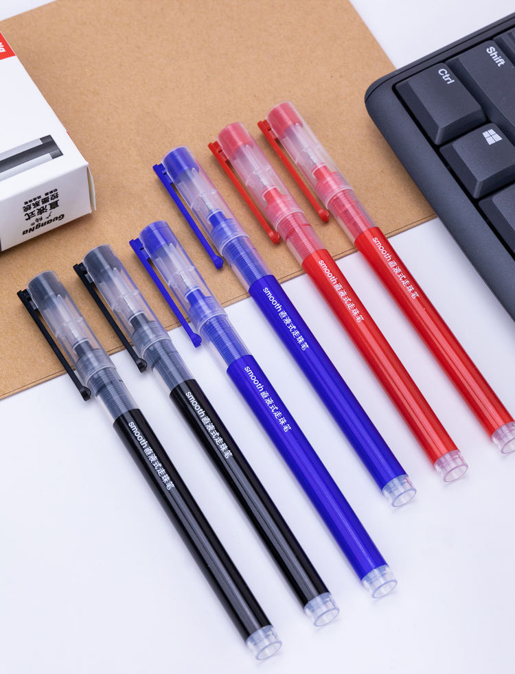 Guangna GN001 pluma neutra de gran capacidad negra, rojo, azul, cuentas de escritura líquida recta, tipo de tapa de extracción de tinta continua