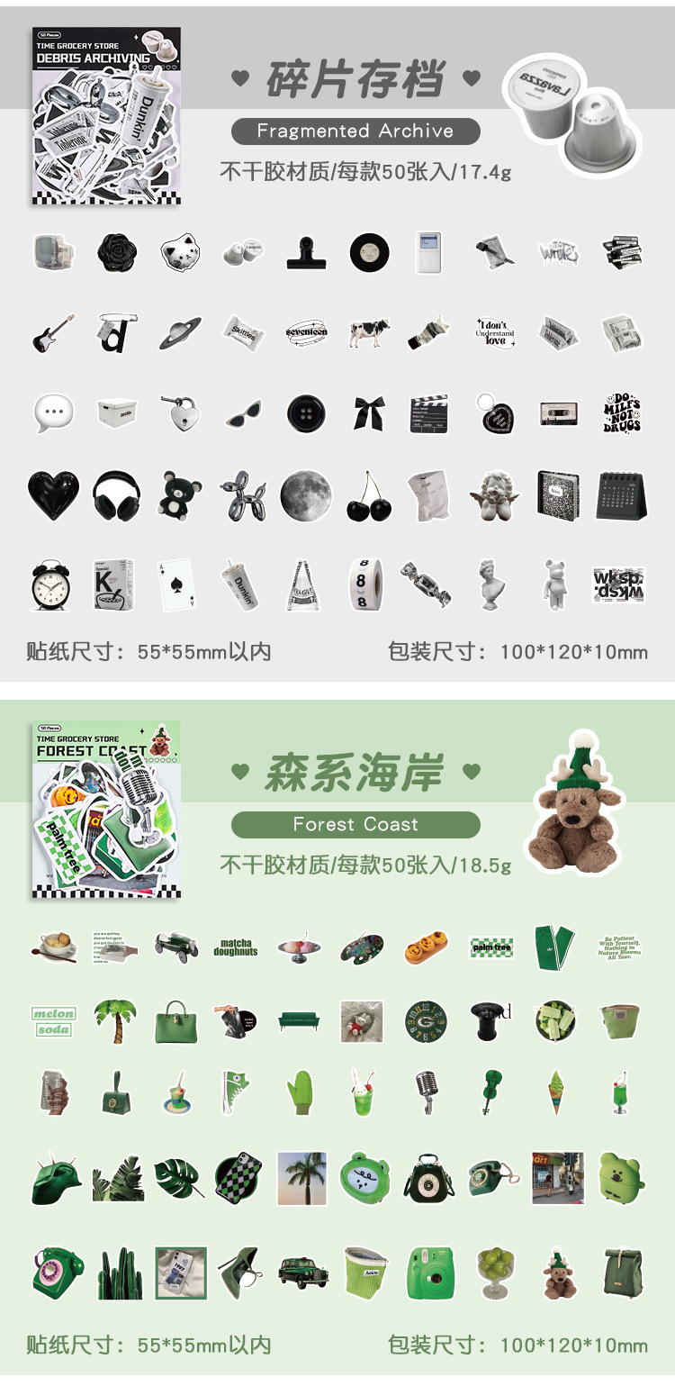 Moda tienda de comestibles pegatinas adhesivas bolsas ins ventilador material pegatinas DIY diario decoración pegatinas papelería