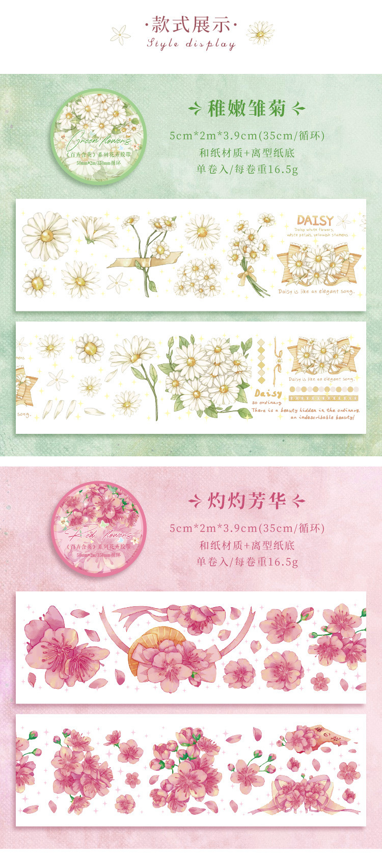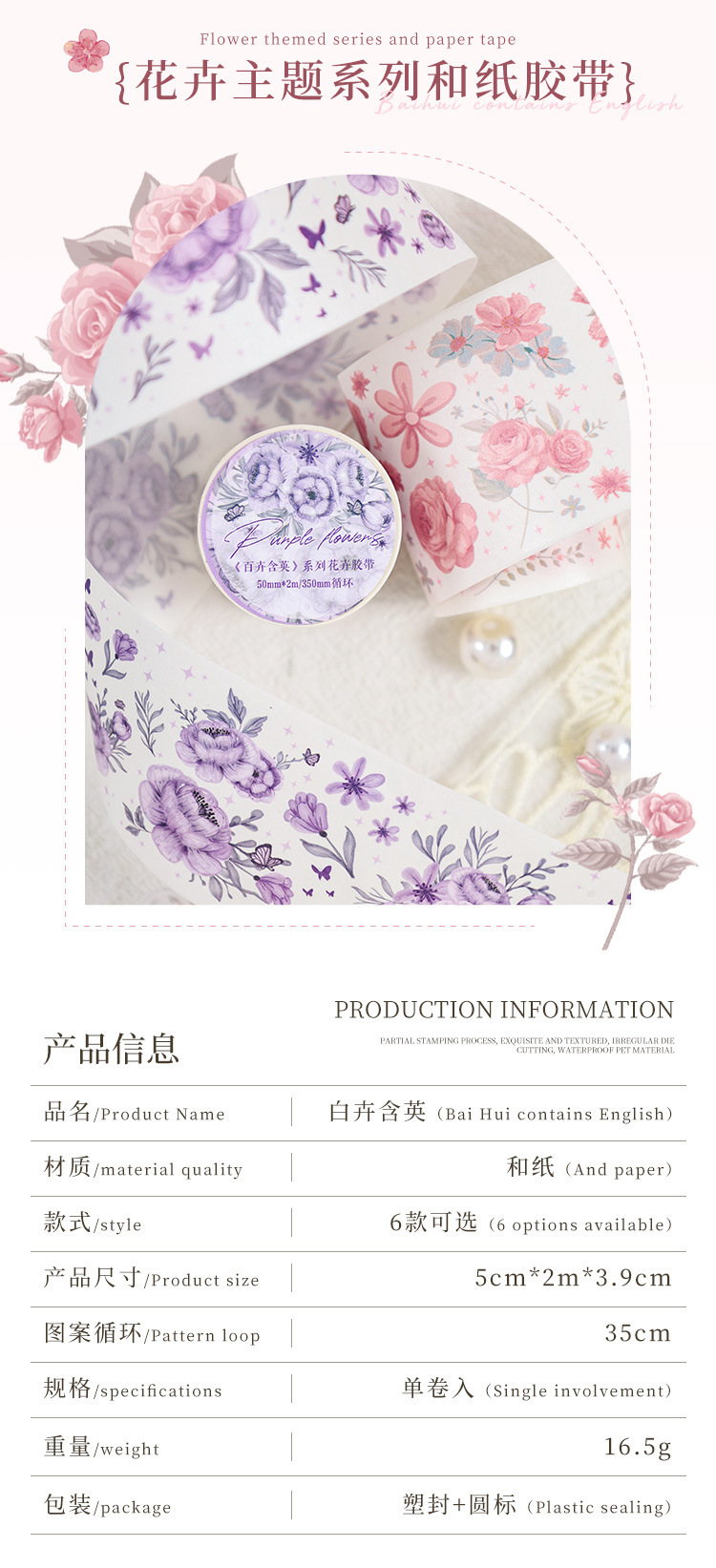 | Color | 1 niebla Púrpura y flores, 2 can Man fanghua, 3 Mar de flores de primavera, 4 té soleado azul oscuro, 5 ardor fanghua, 6 margaritas tiernas |