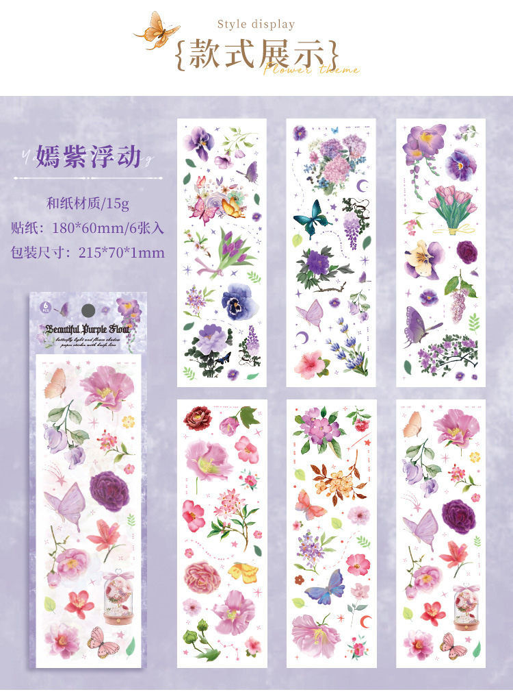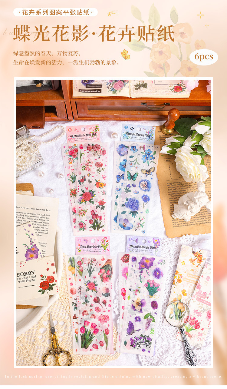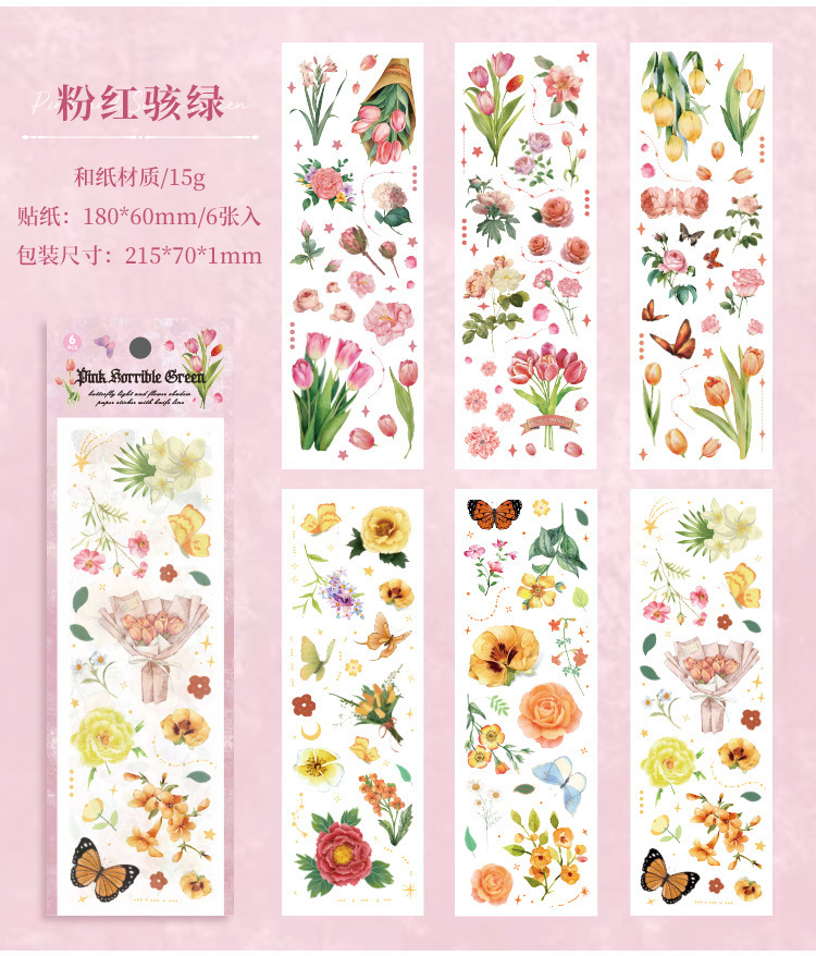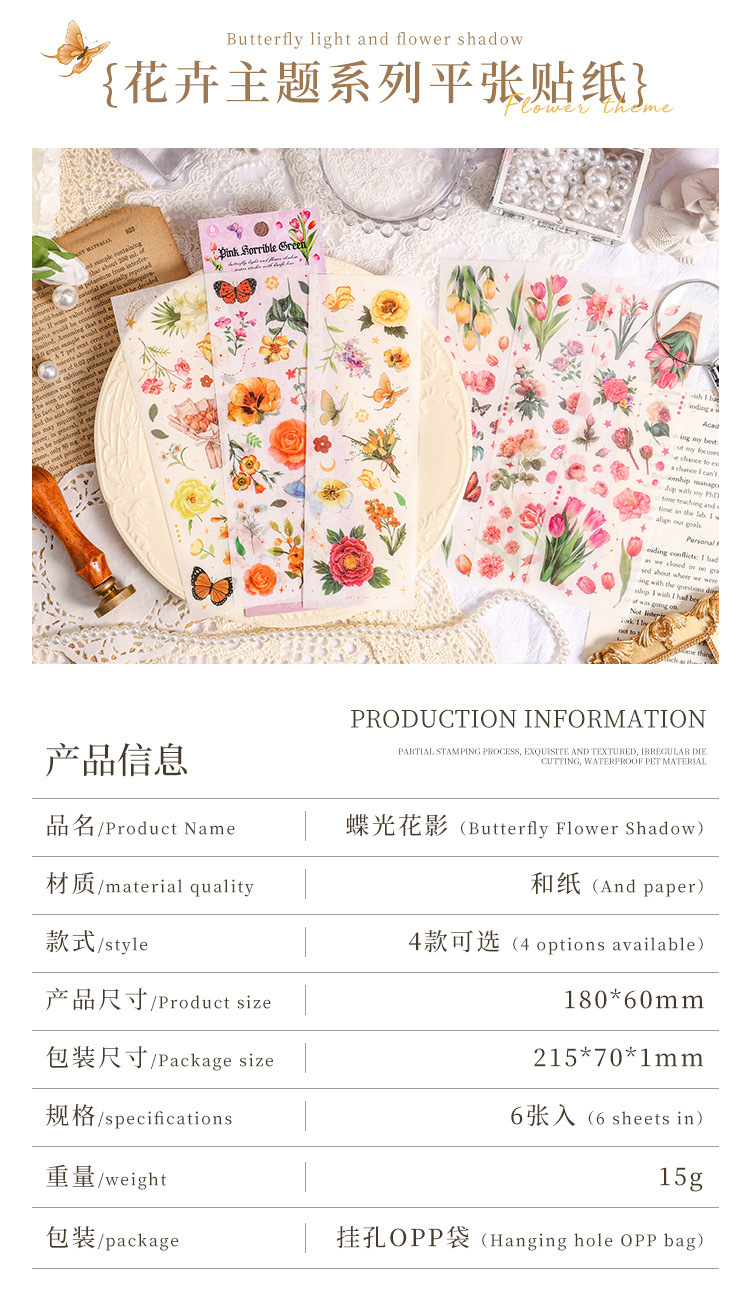 Butterfly Light Flor Sombra Creativa y Papel Pegatinas Retro Butterfly Floral Cuaderno Pegatinas Niños Diy Material Cuaderno Pegatinas