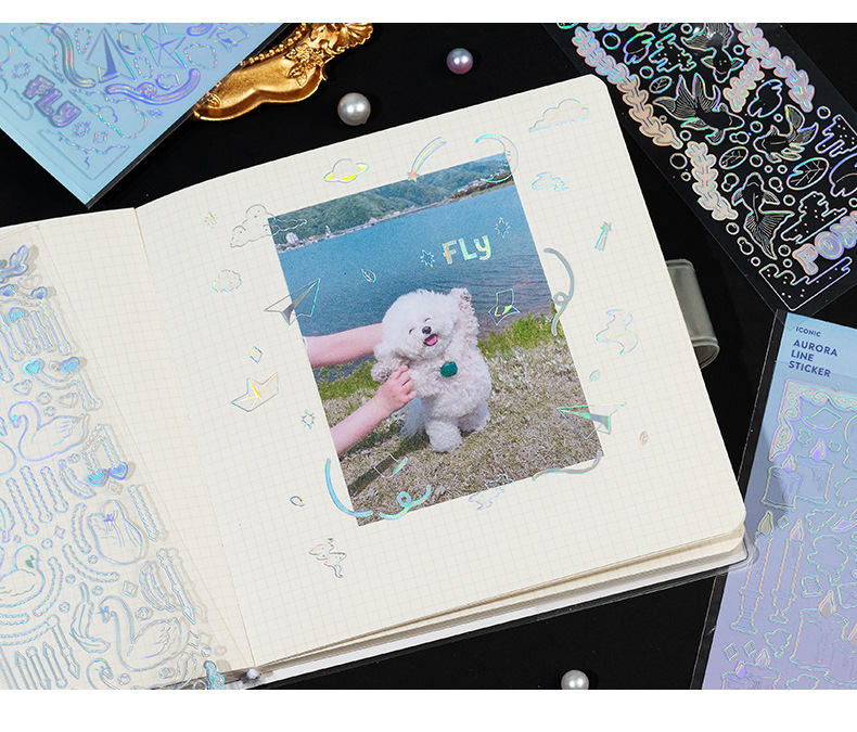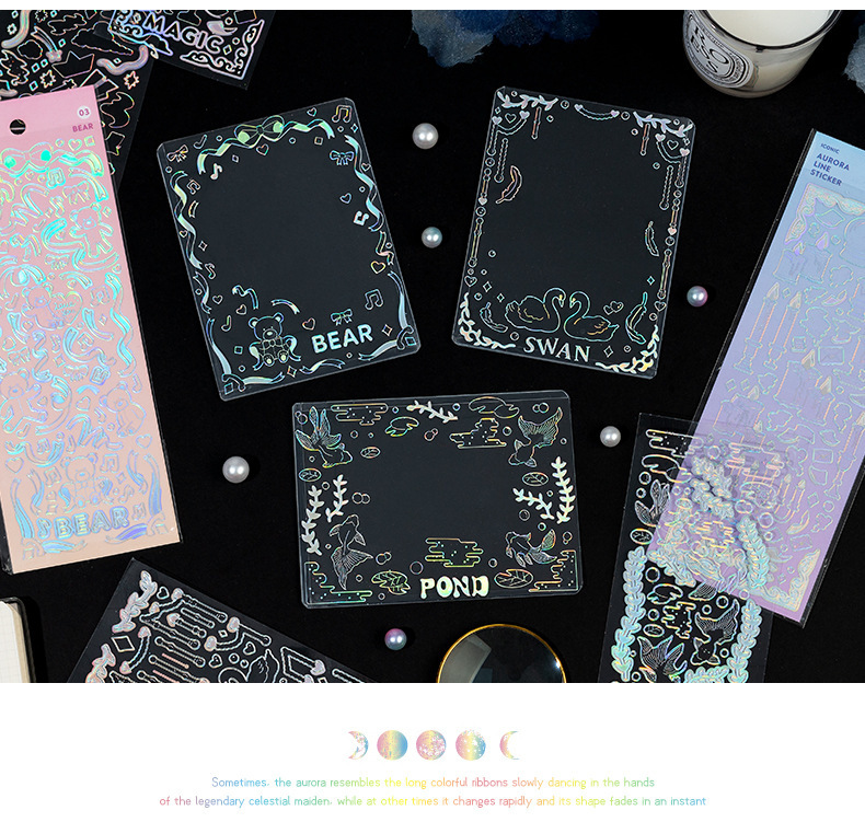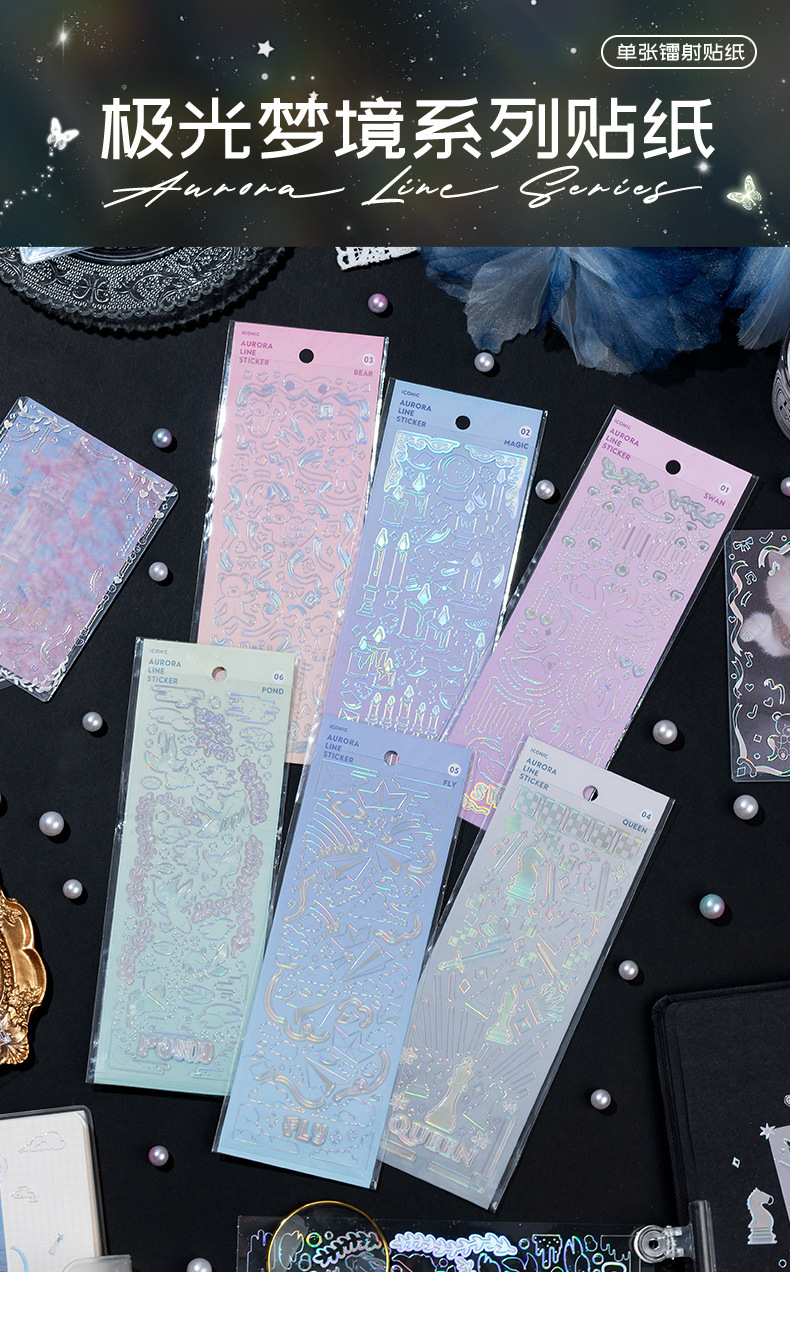Aurora LINE láser pegatinas diy foto decoración base material collage pegatinas de papelería