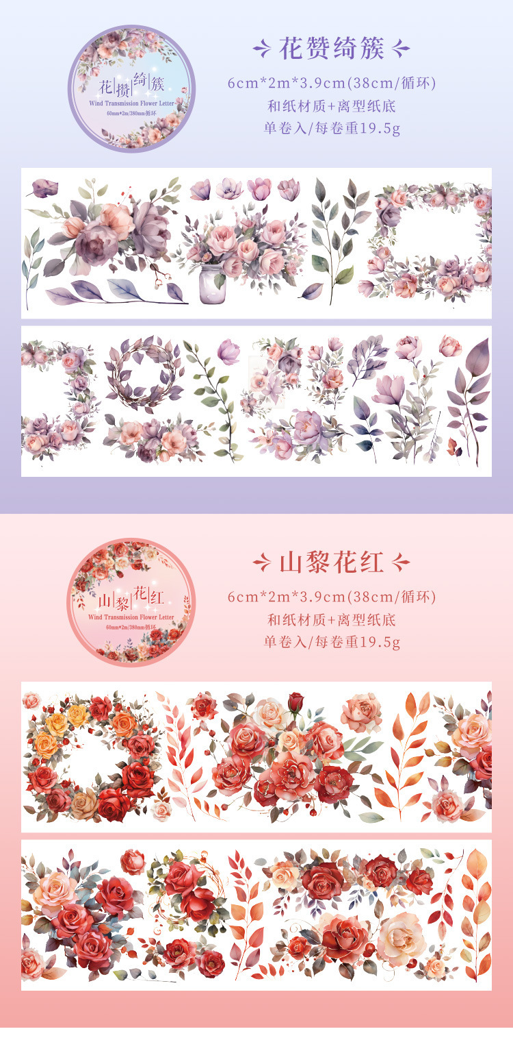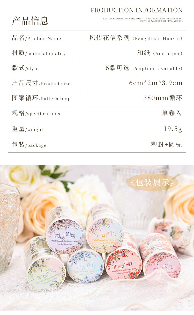 Serie de cartas de flores Fengchuan y cinta de papel libro de bricolaje diario material de decoración pegatinas de flores pegatinas de plantas retro