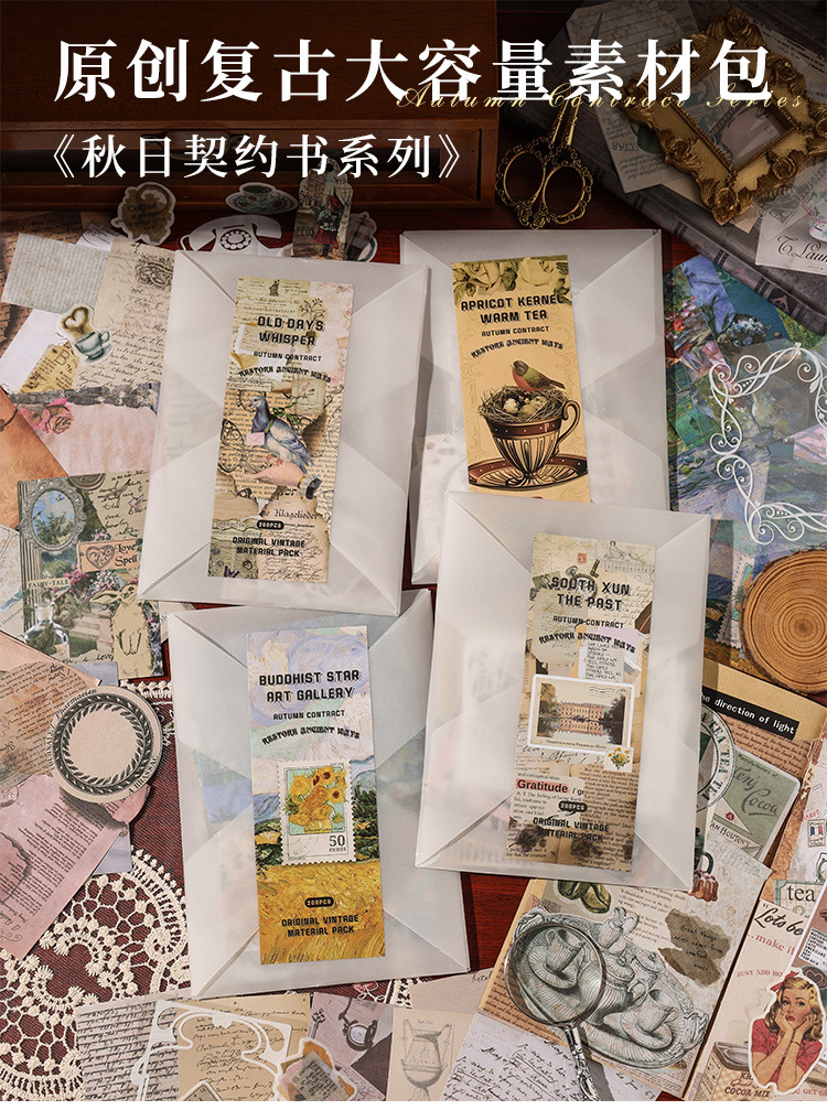 Otoño contrato libro serie retro material traje DIY diario decorativo pegatinas retro mensaje nota papel