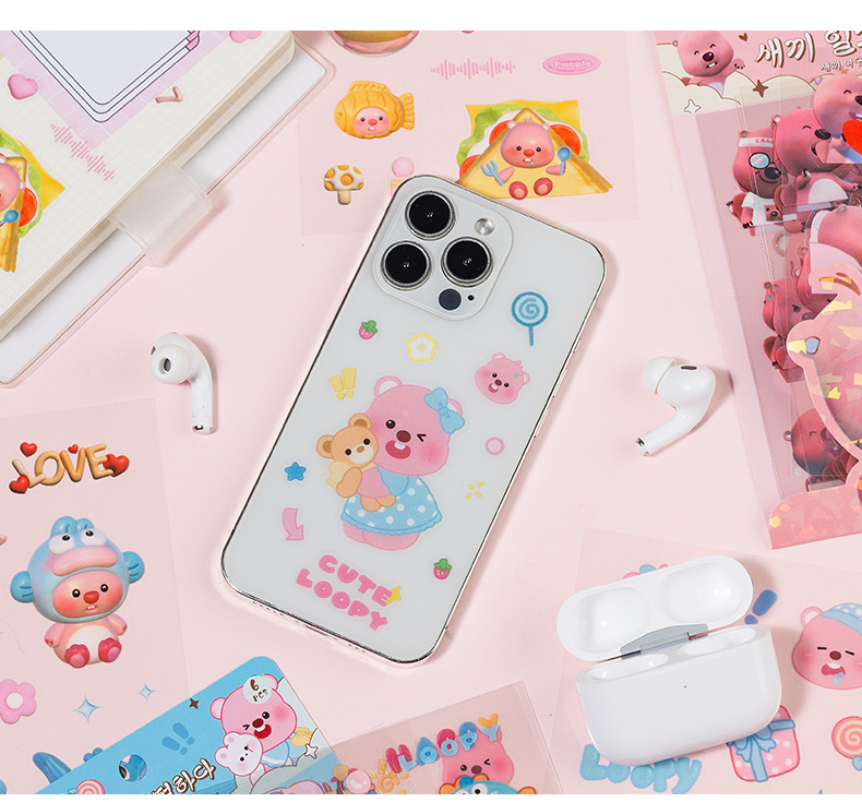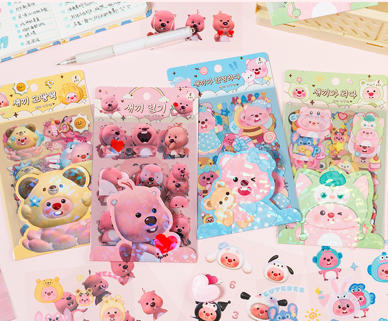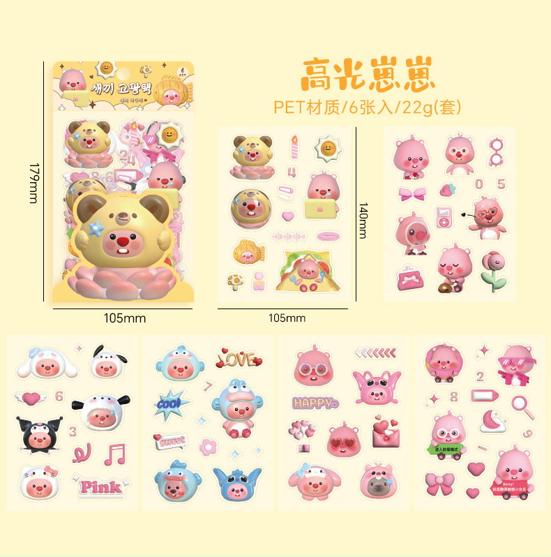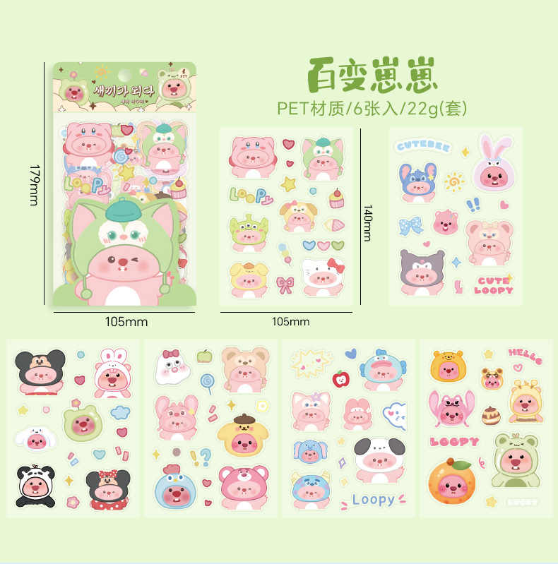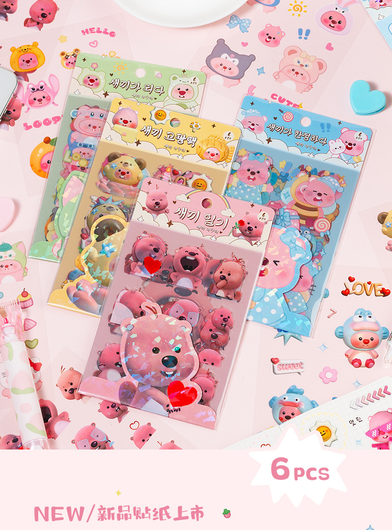 Li puzi serie dibujos animados transparente impermeable PVC pegatinas DIY diario material decorativo taza de agua papelería pegatinas