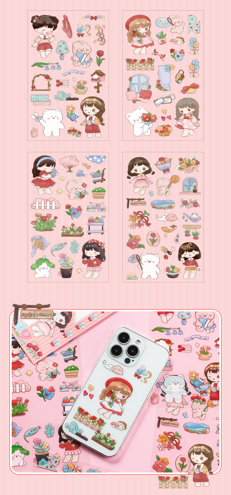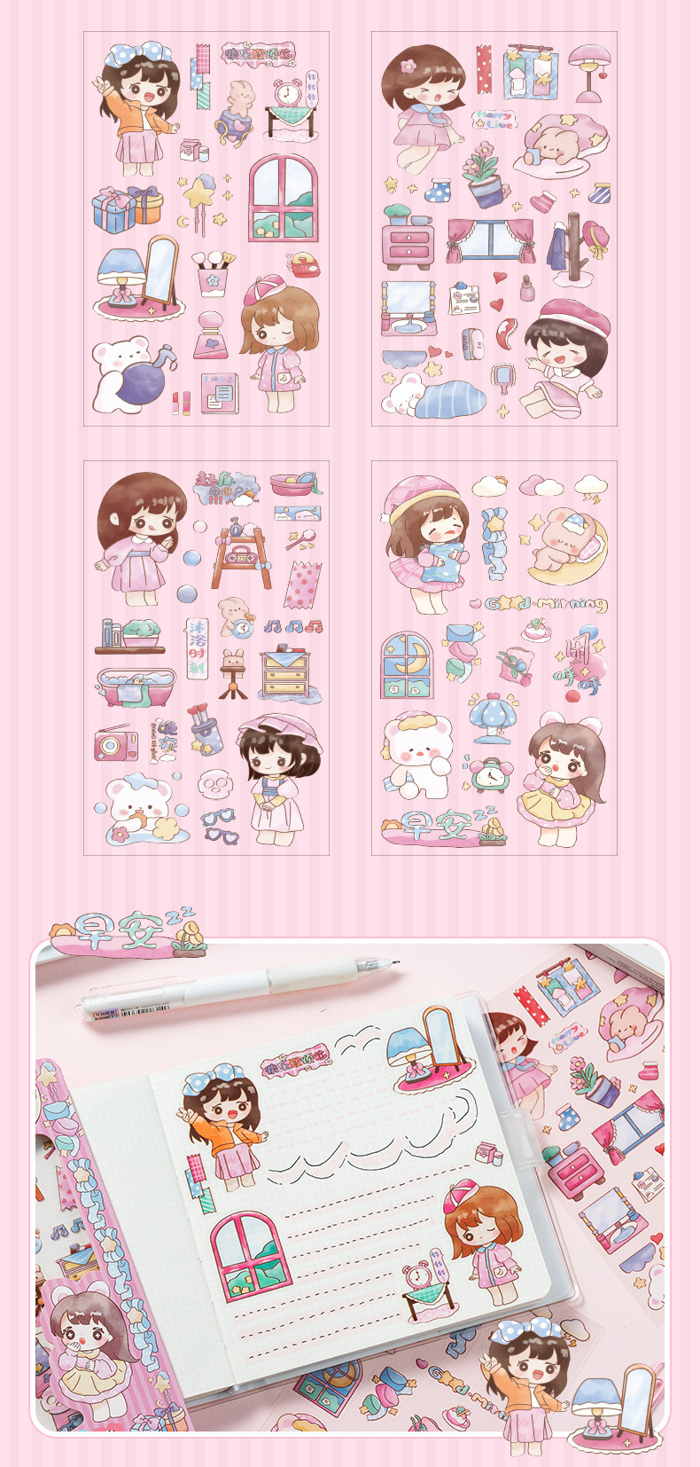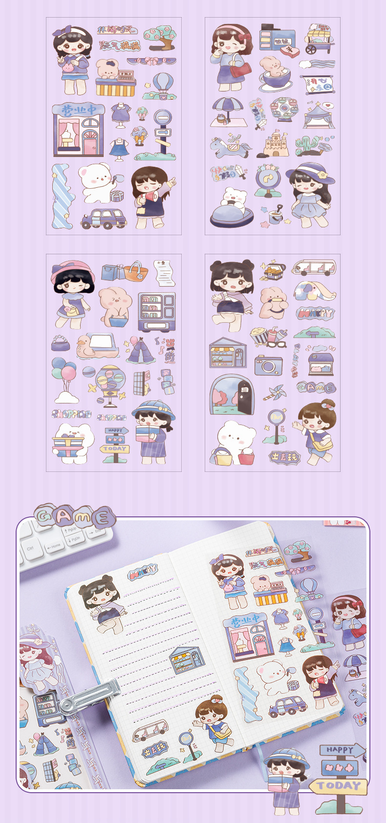 Linda chica Bella diario de PVC impermeable pegatinas DIY diario decoración tema de la serie de dibujos animados pegatinas de anime