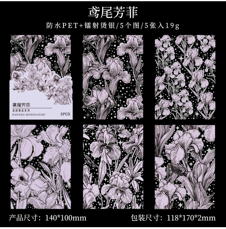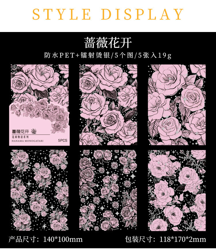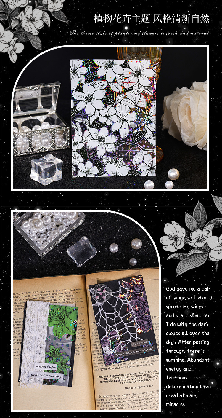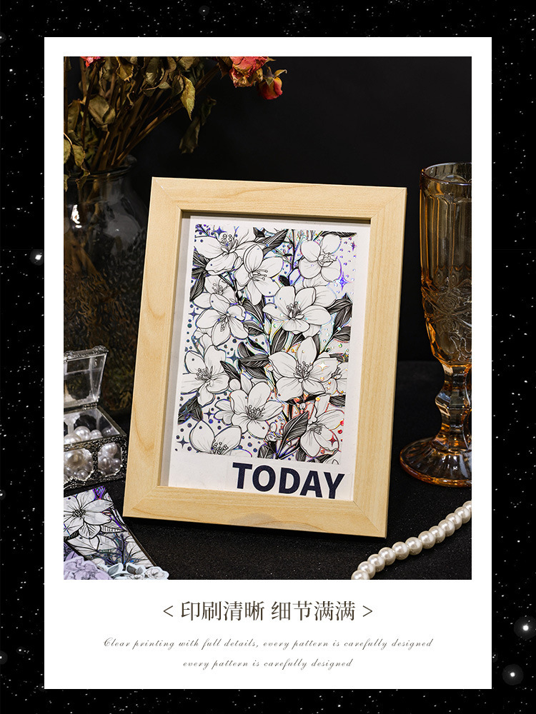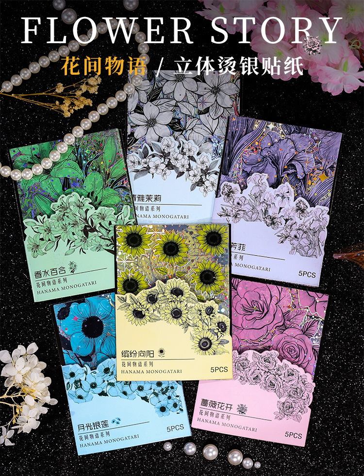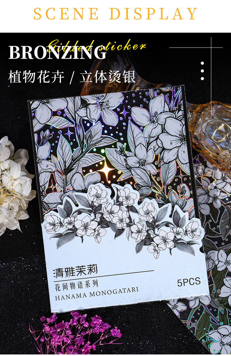 Flor historia serie retro láser pegatinas DIY mano cuenta tridimensional de plata estampado flor material pegatinas niños papelería pegatinas