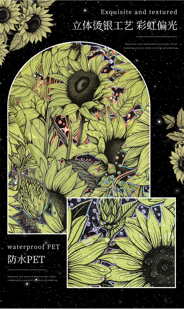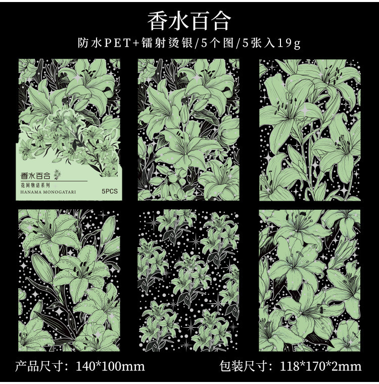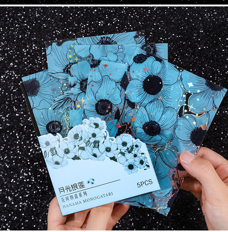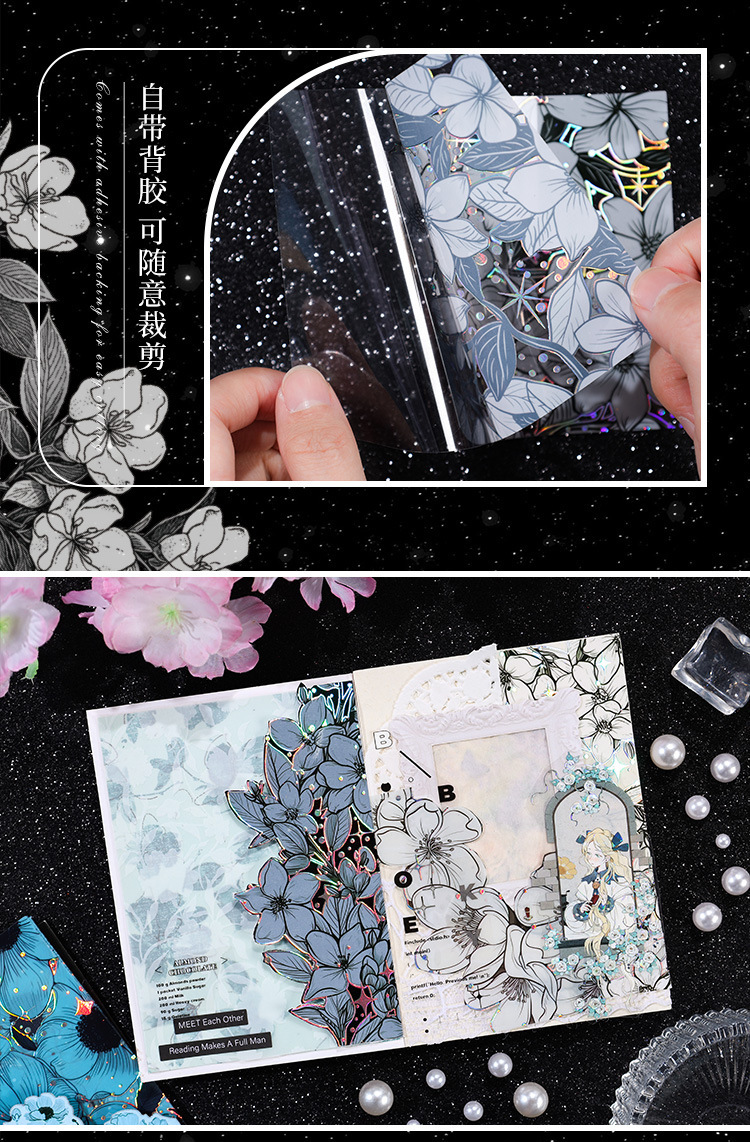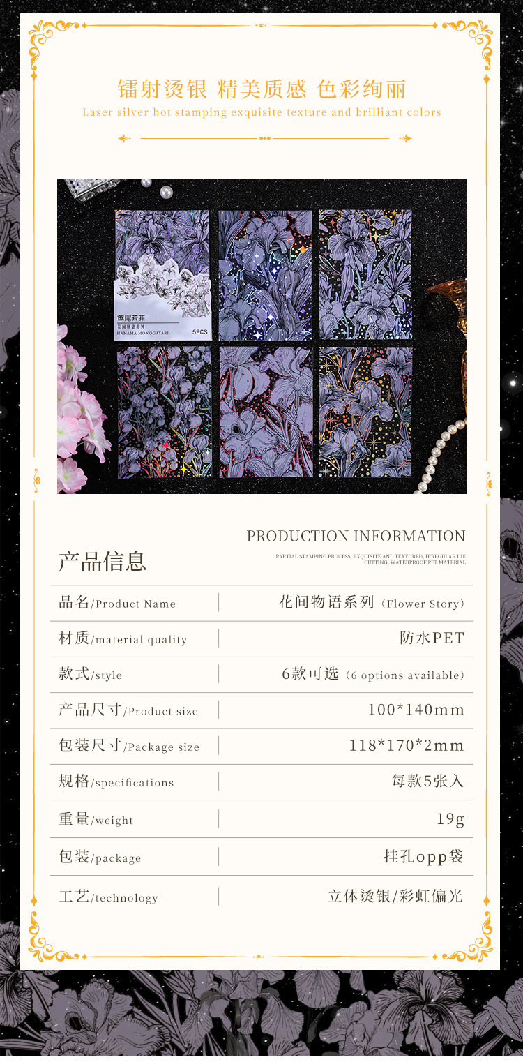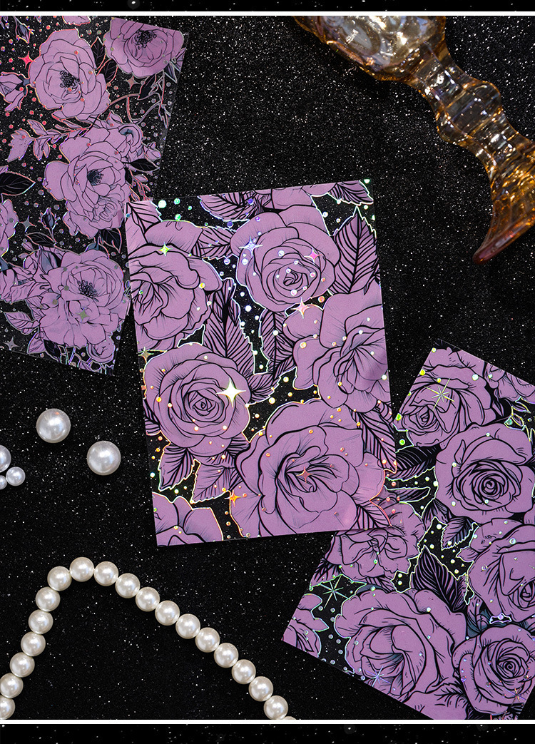 Flor historia serie retro láser pegatinas DIY mano cuenta tridimensional de plata estampado flor material pegatinas niños papelería pegatinas