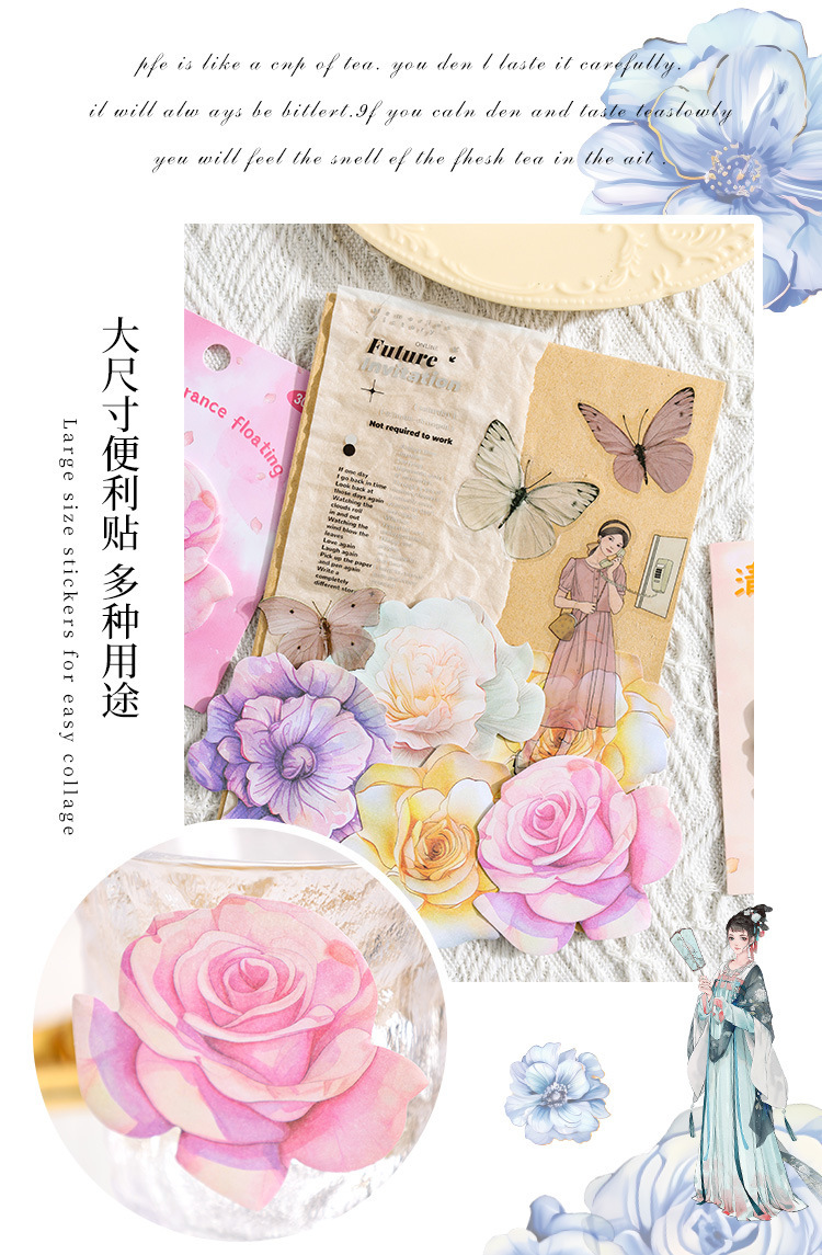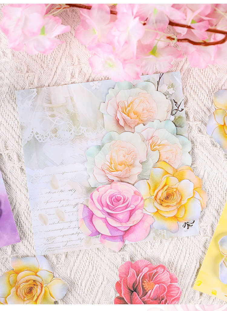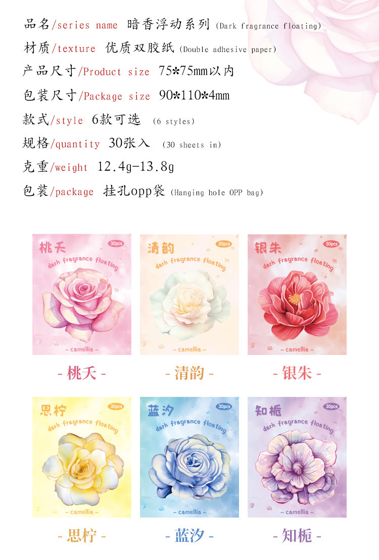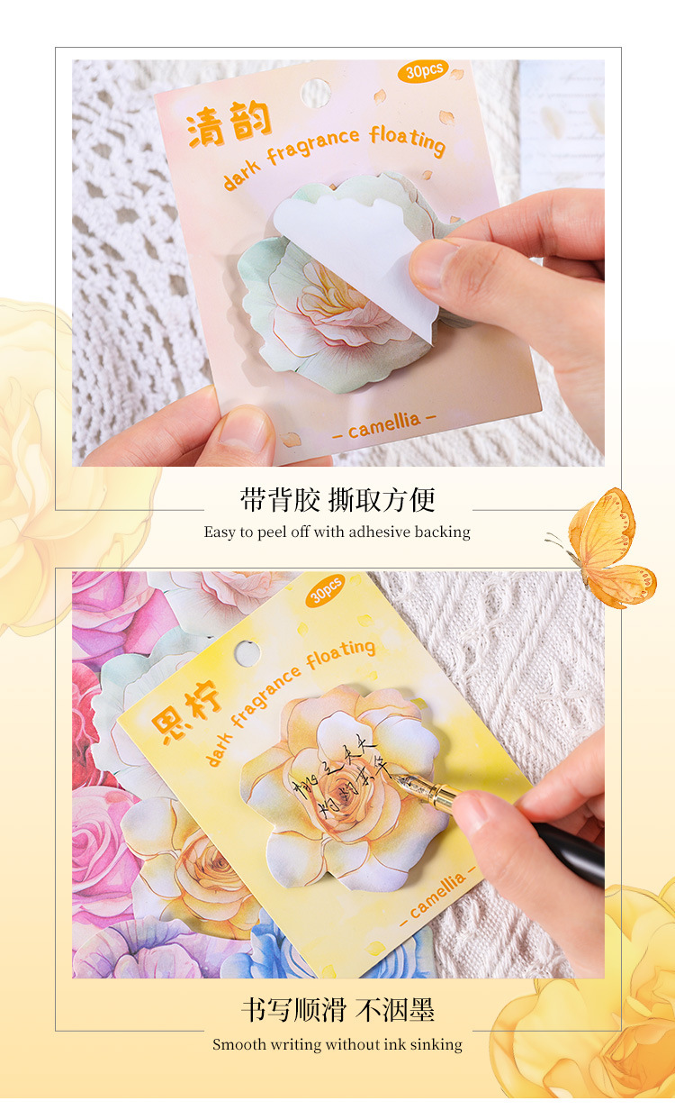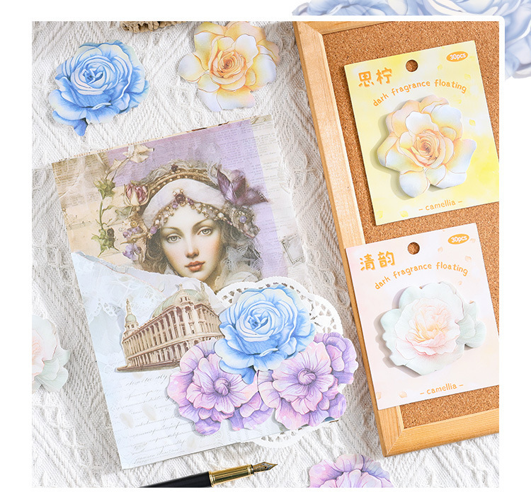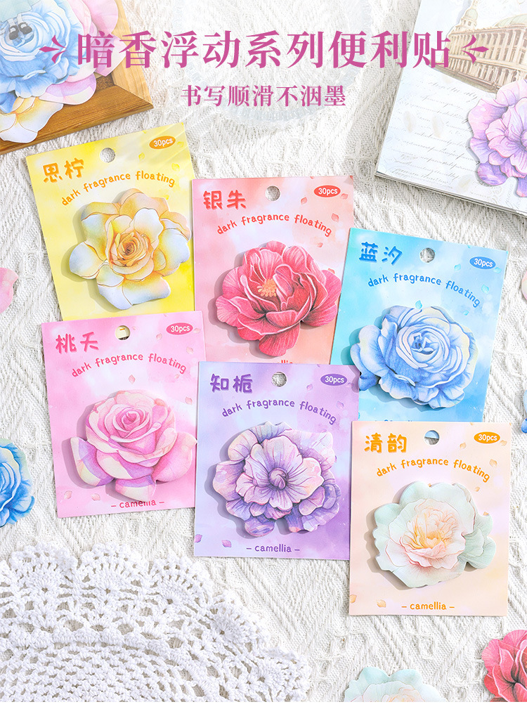 Fragancia oscura serie flotante flor nota adhesiva pequeña fresca con pegajosa flor retro N veces pegatinas mensaje nota papel