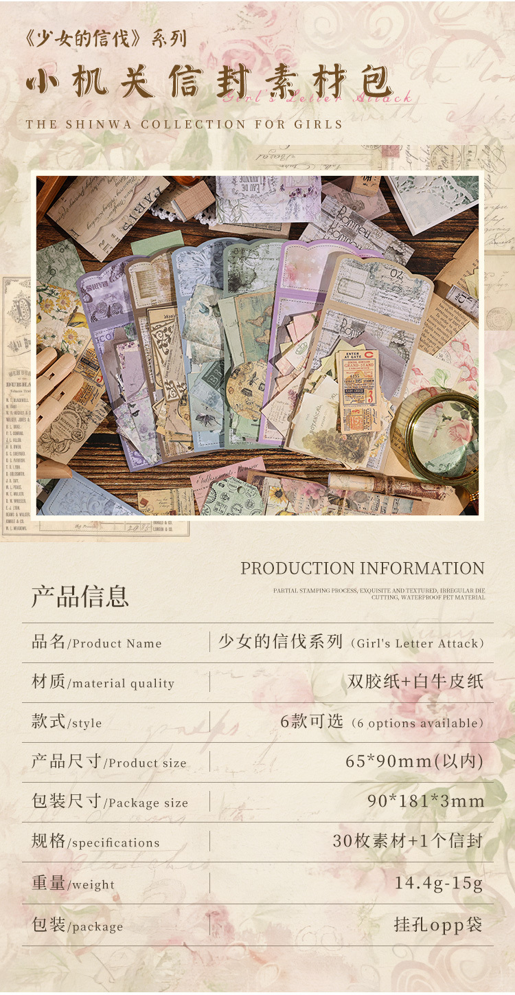 Serie de Xinfan de niña Material papel DIY diario vintage papel de nota base no adhesiva papel de fondo decorativo