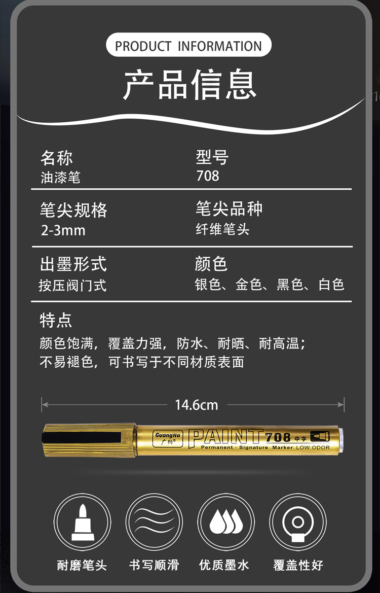 Guangna 708GN pintura pluma rotulador valor traje de secado rápido tinta impermeable salida gran cantidad de tinta libre 45ML