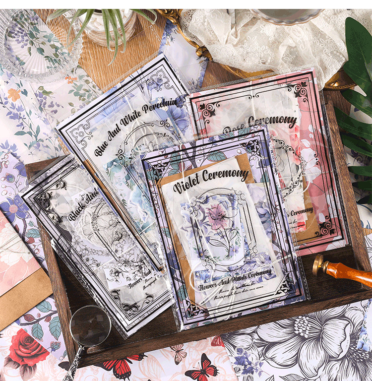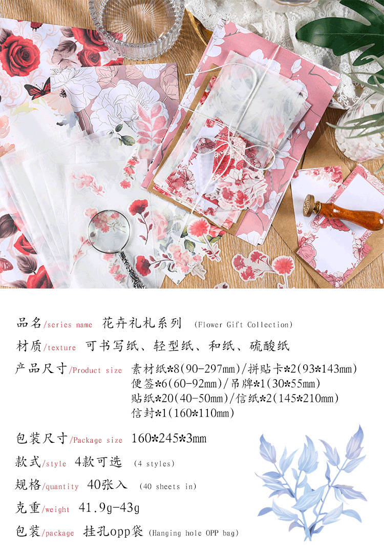 Flor regalo carta serie material pintado a mano bolsa vintage diario pegatinas traje DIY diario decoración base papelería pegatinas