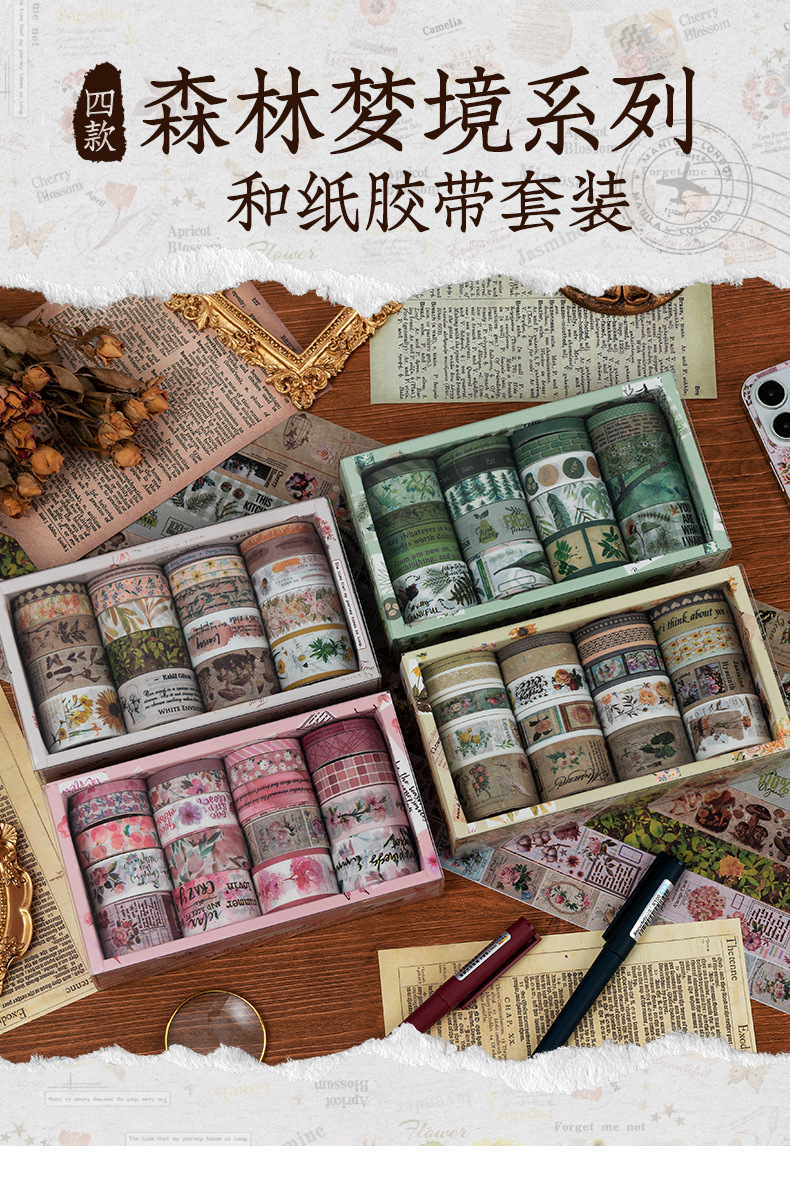 Bosque sueño serie mano cuenta y cinta de papel caja regalo traje DIY retro planta material decorativo papelería pegatinas