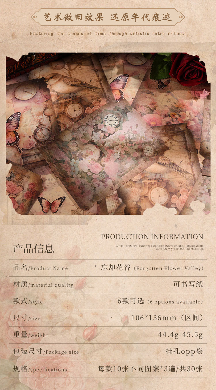 Olvídate de Flower Valley Journal material papel retro no pegajoso mensaje notas memorándum diario base papel DIY material libro