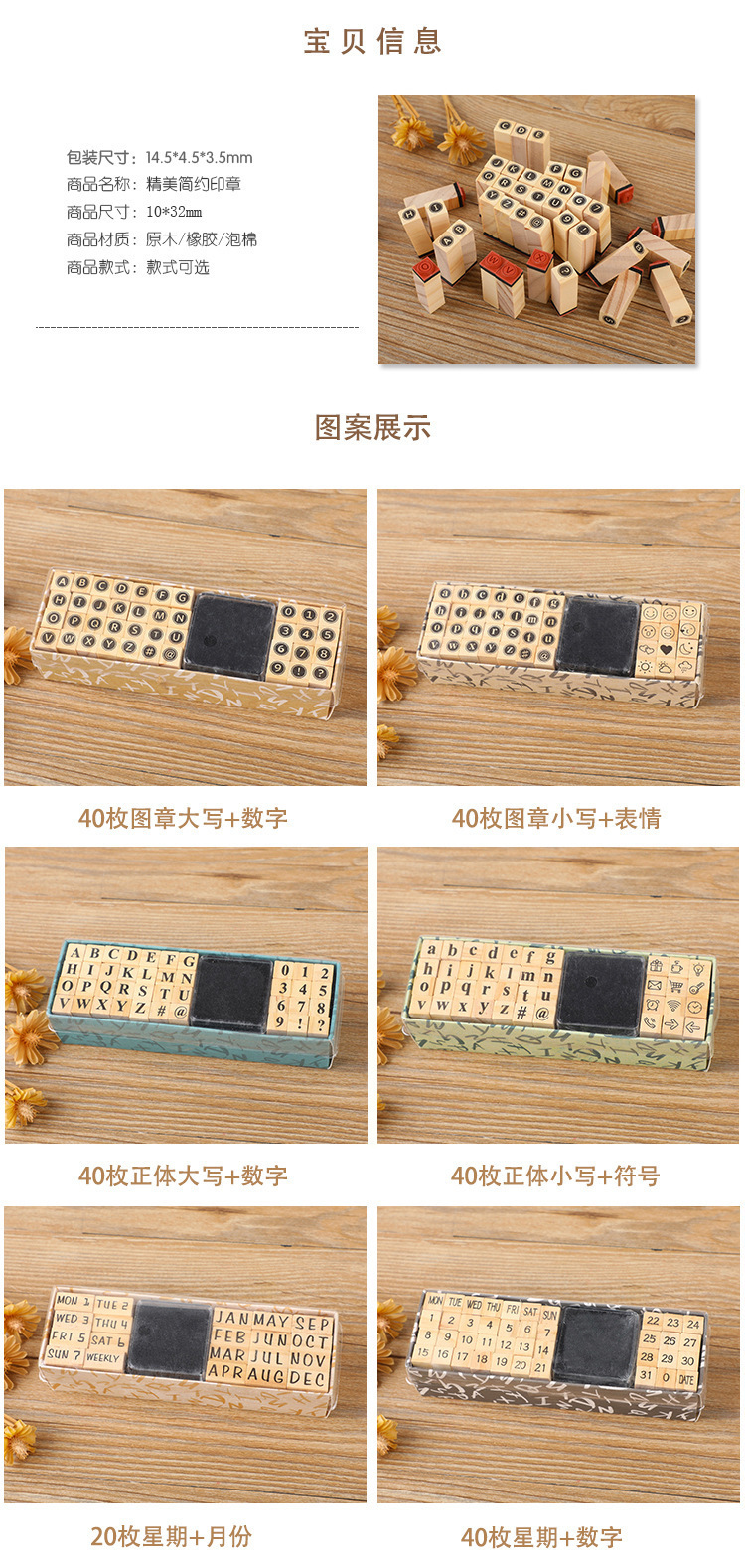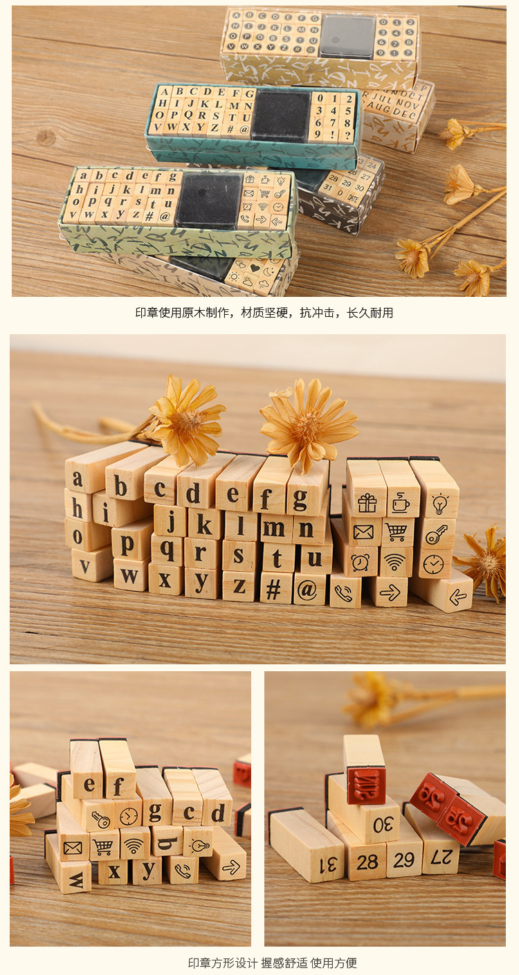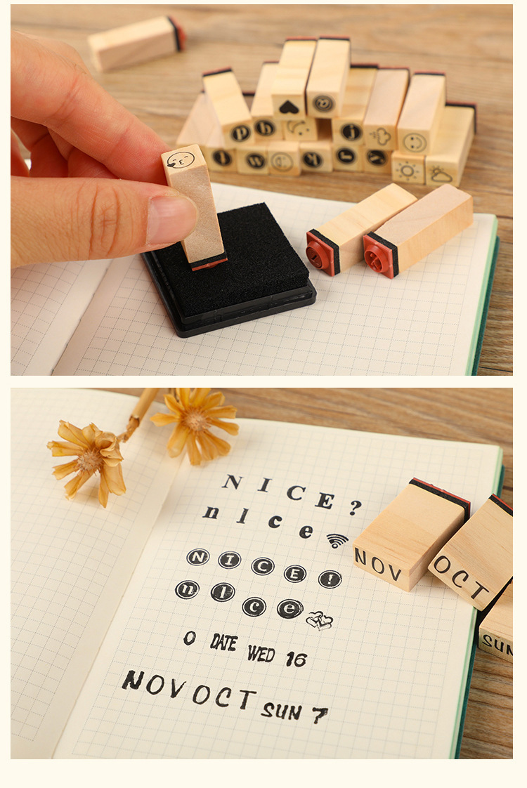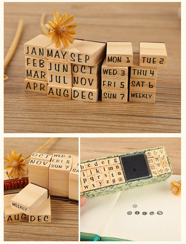 Diario básico traje semana número mes carta sello DIY diario sello de madera 40 unidades en 8 modelos