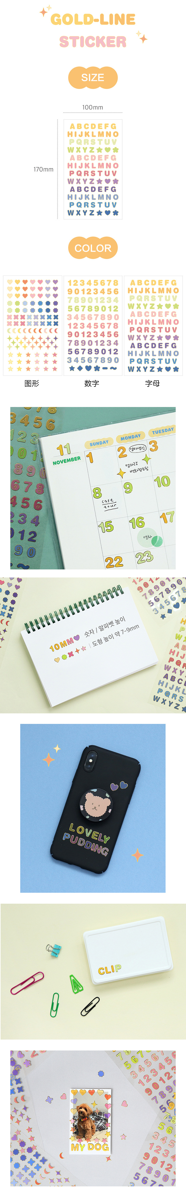 DIY álbum Arco Iris borde dorado alfanumérico pegatinas figura geométrica diario papel decorativo material/2 unidades