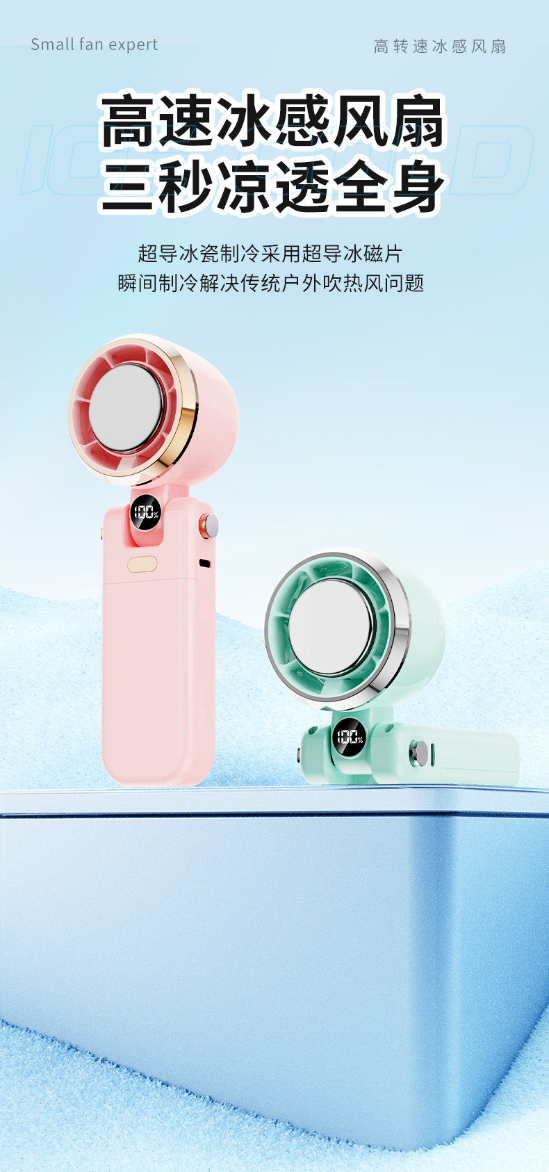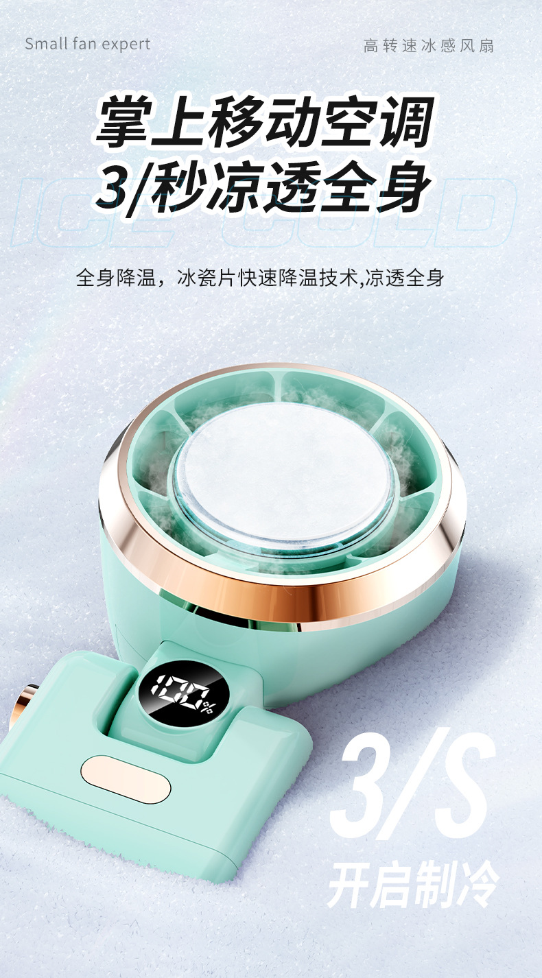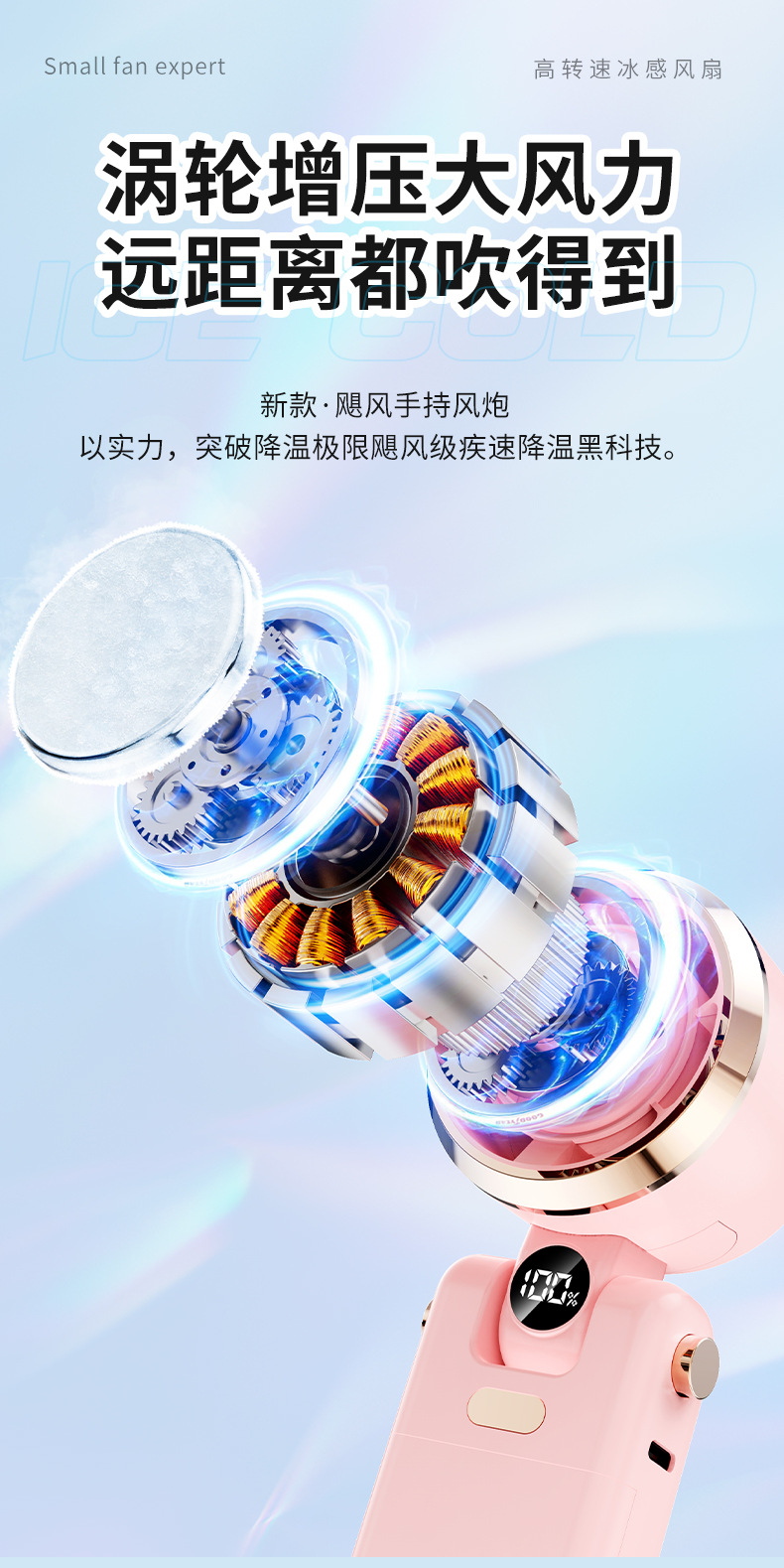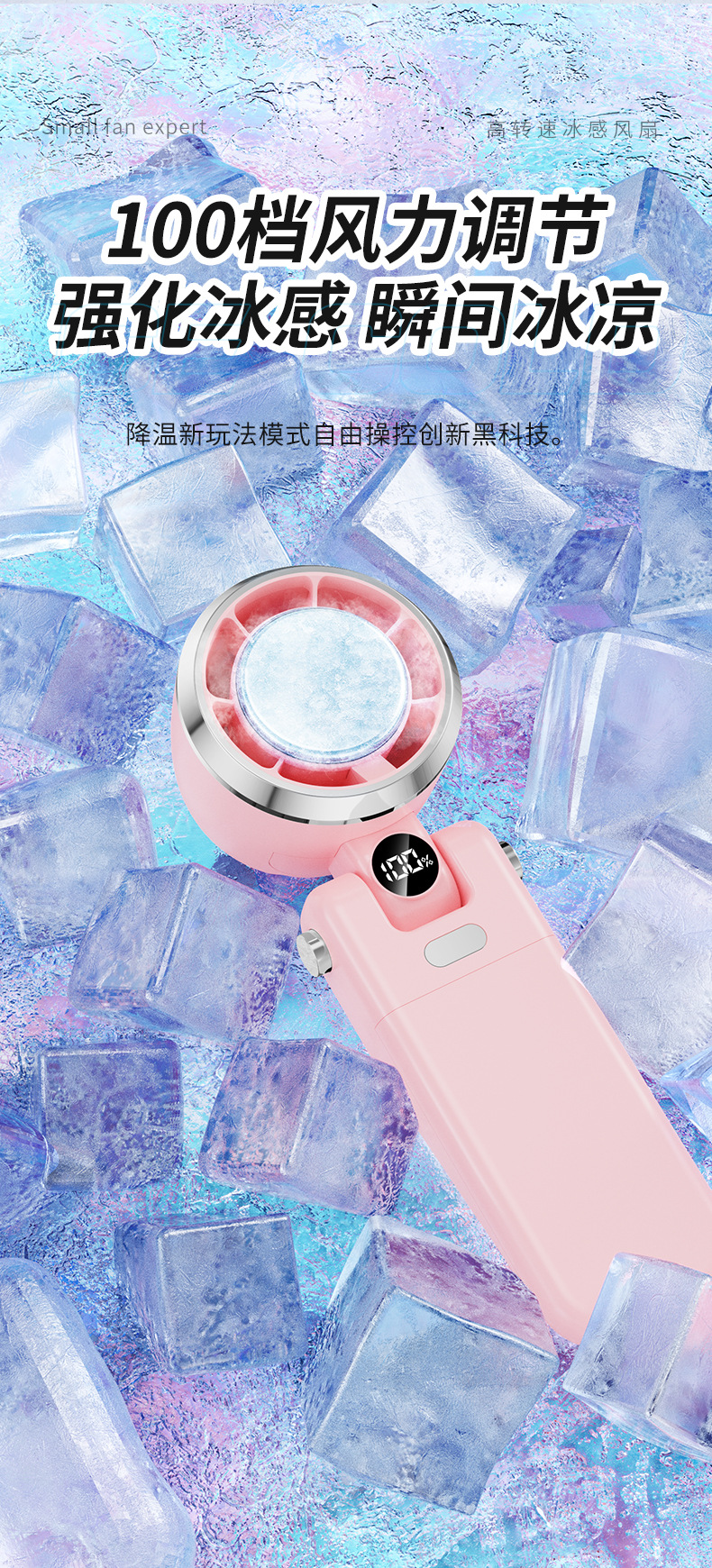 2025 ventilador de mano de hielo de oficina al aire libre portátil USB refrigeración digital de alta velocidad violenta turbina pequeño ventilador