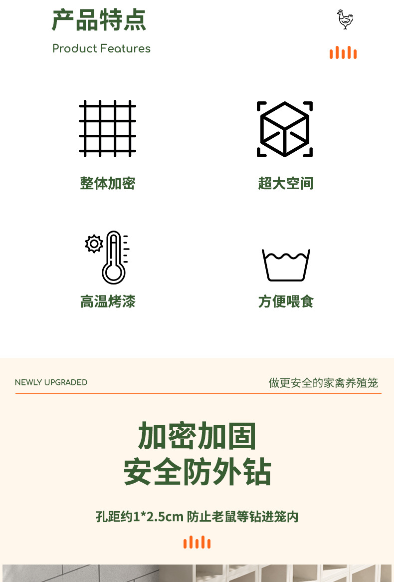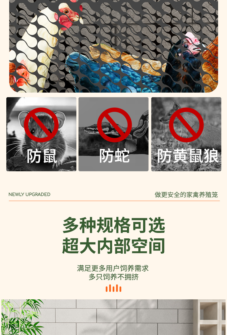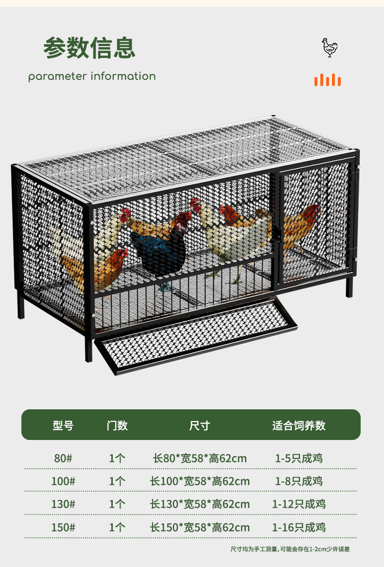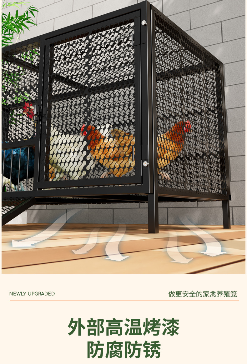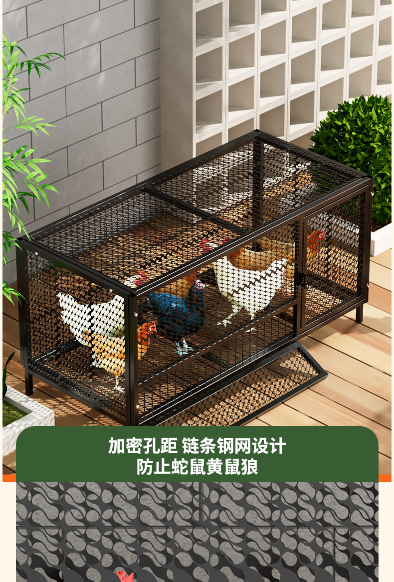 Jaula de pollo, exterior doméstico, gran tubo cuadrado, red secreta, a prueba de lluvia, rutina rural, limpieza automática de estiércol, jaula de cría, comadreja