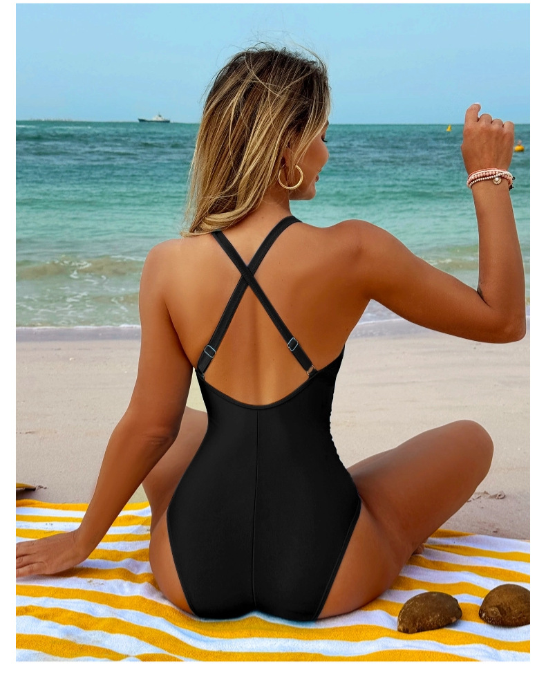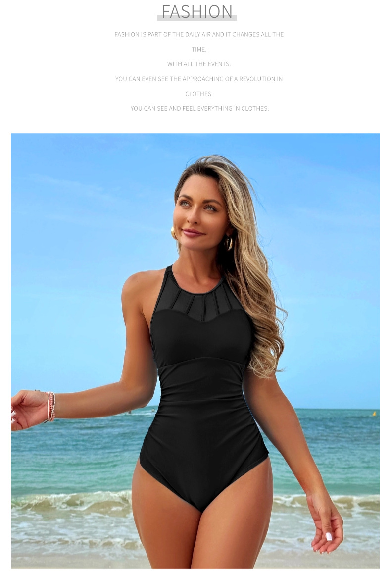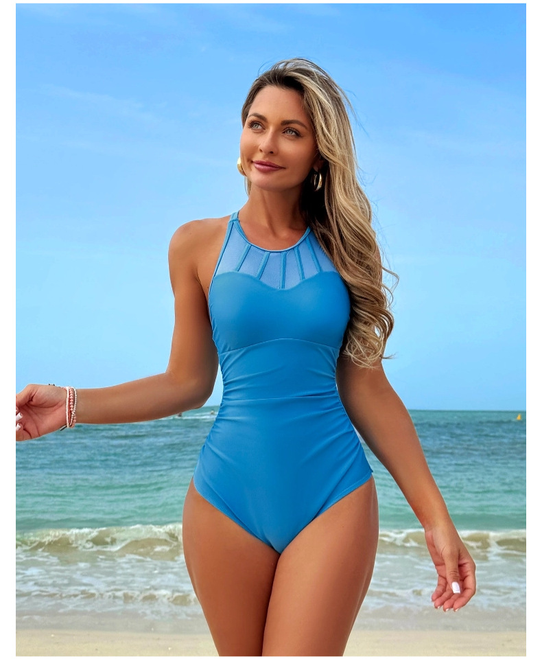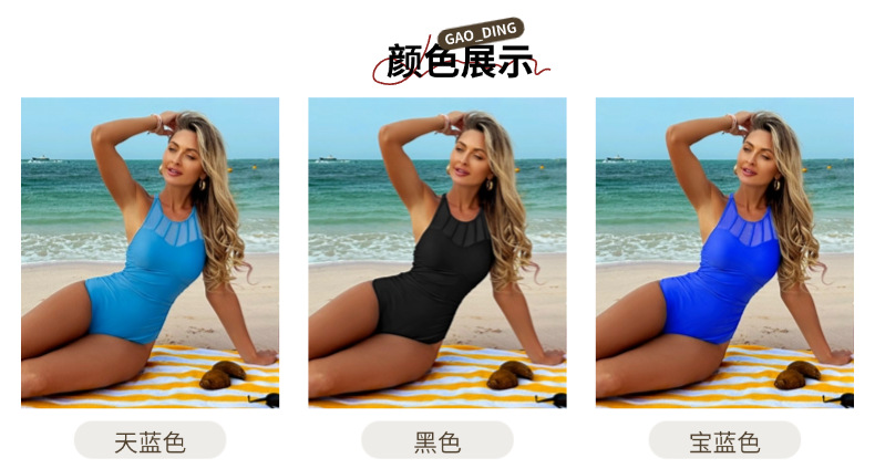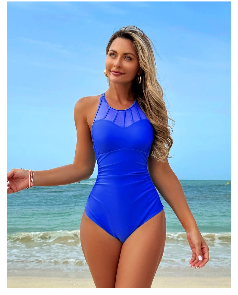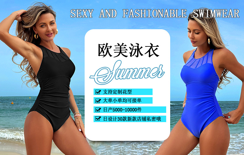 Nuevo traje de baño de una pieza transfronterizo de Amazon, costura de malla, estilo caliente europeo y americano sexy, traje de baño de comercio exterior delgado multicolor, mujer