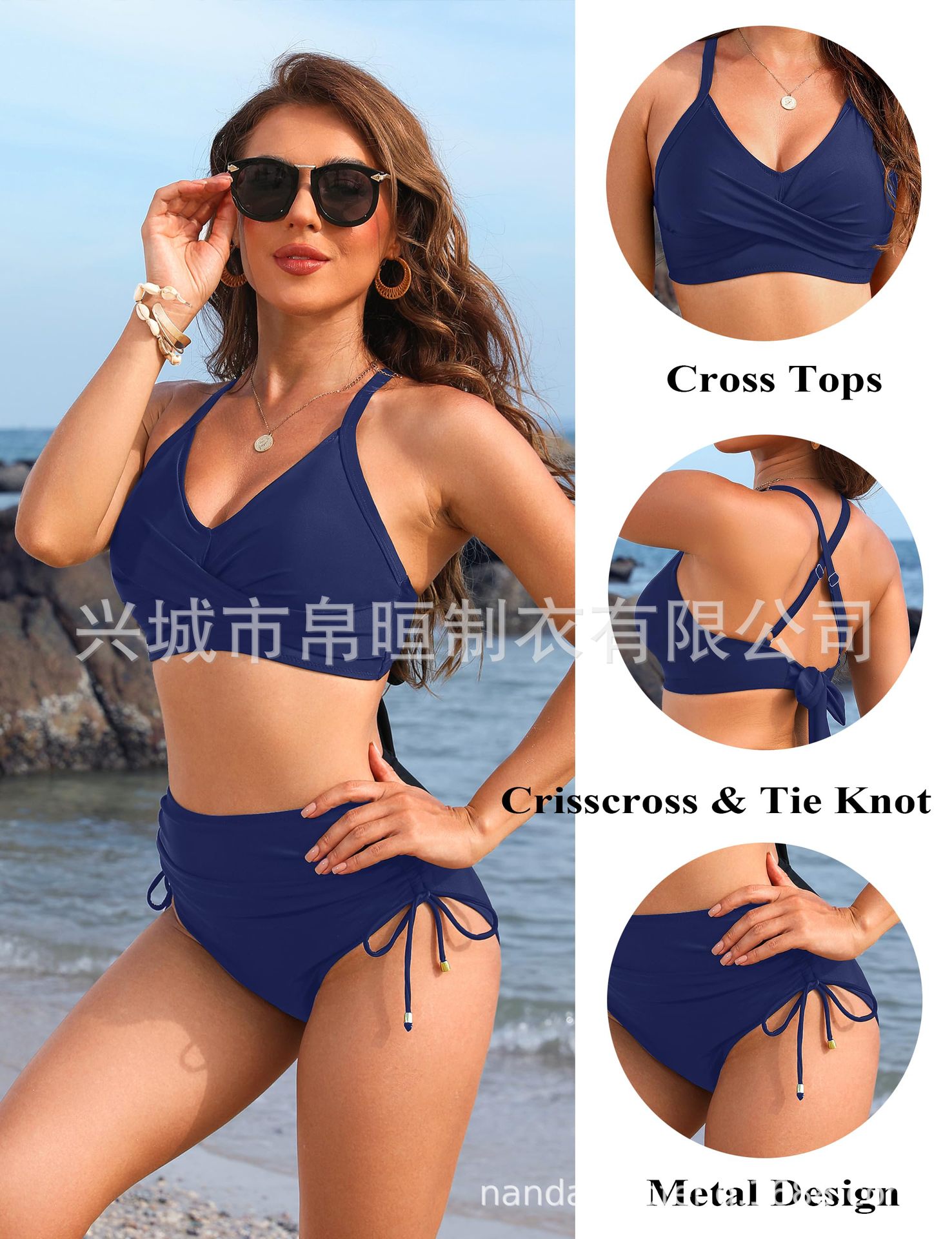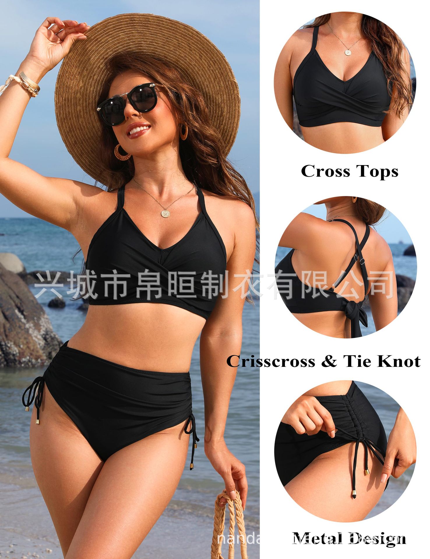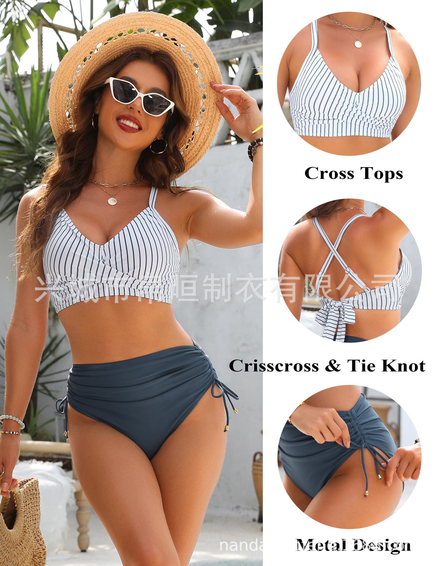 2025 nuevo bikini de cintura alta de Europa y los Estados Unidos bikini conjunto de cintura alta trajes de baño de abdomen de correa cruzada