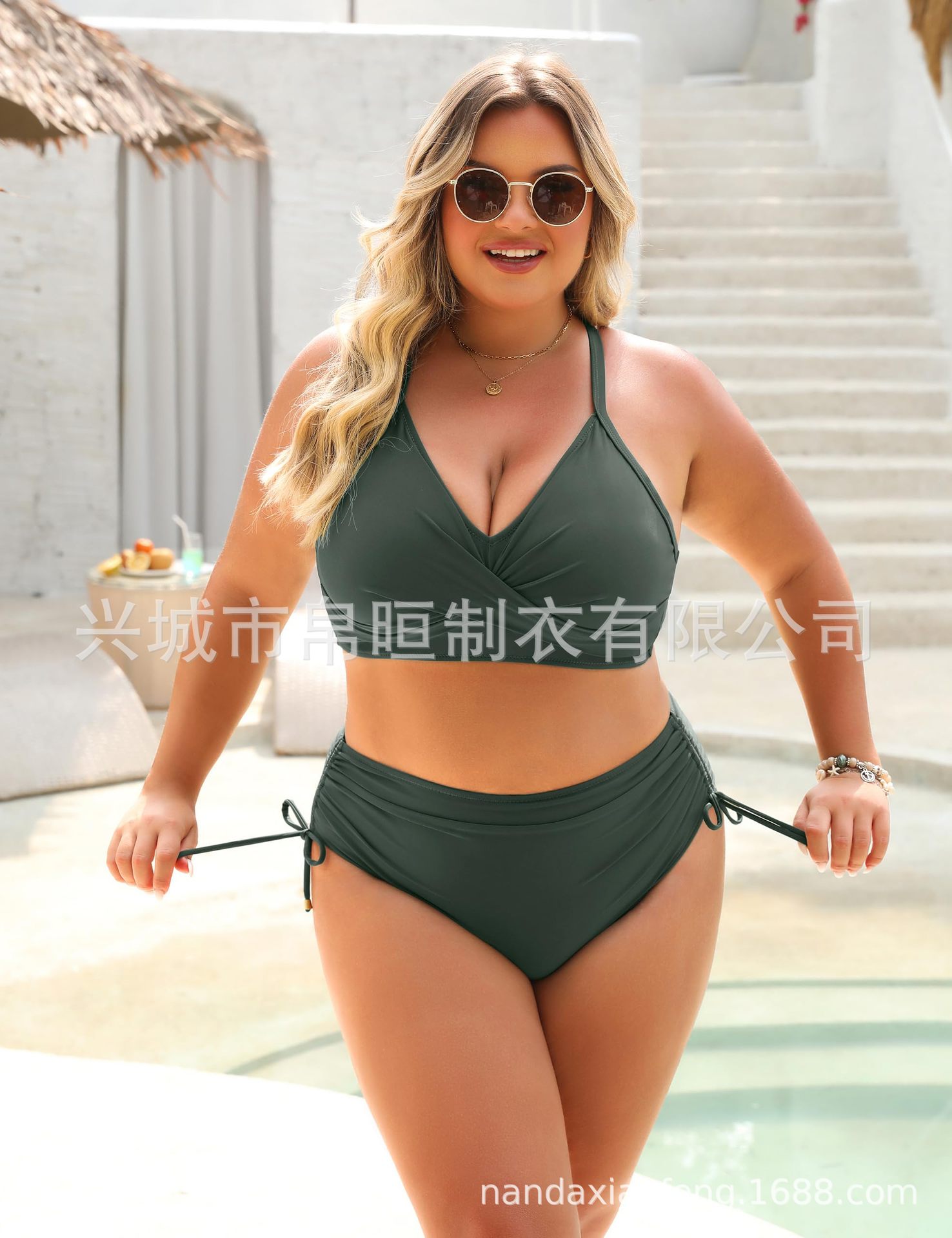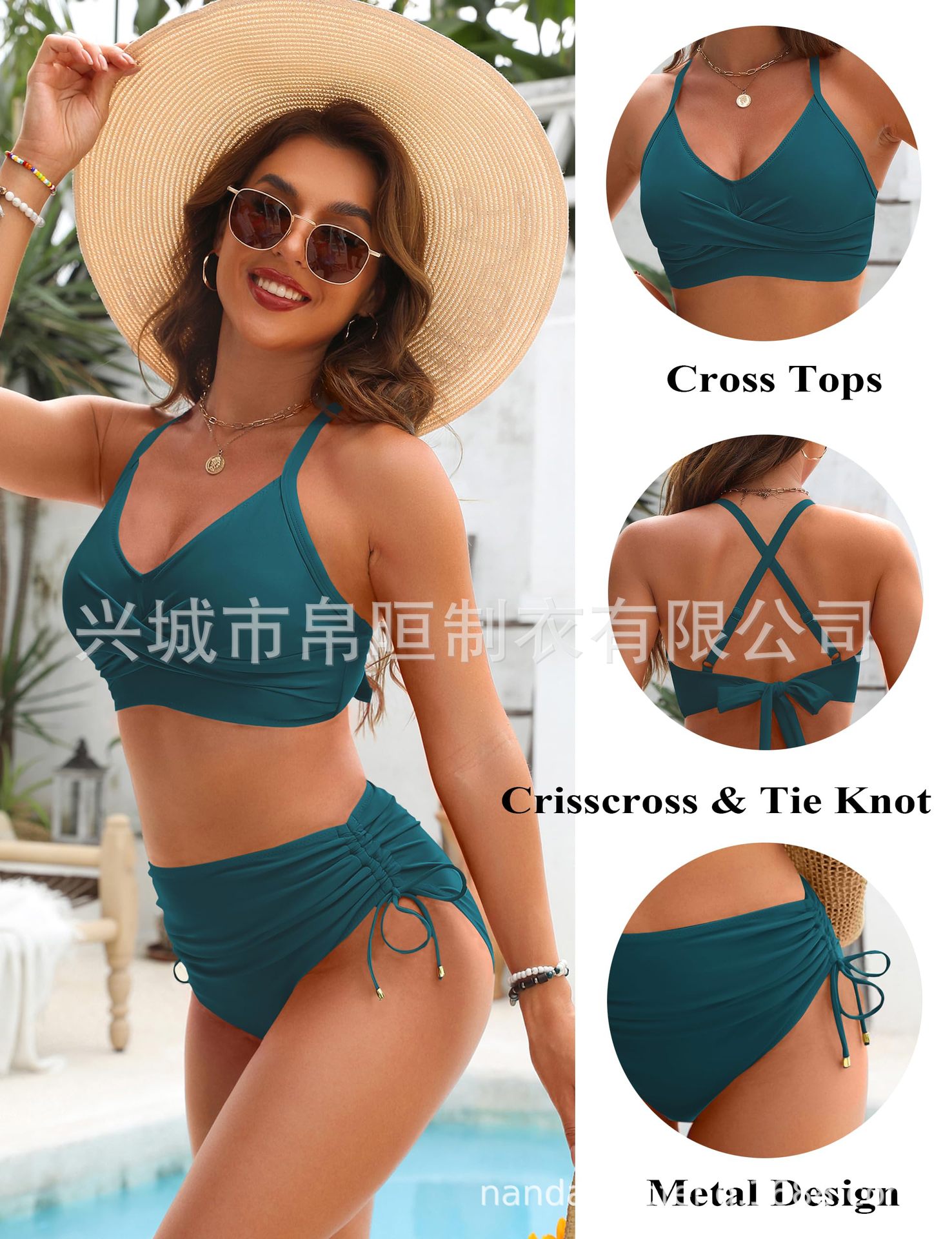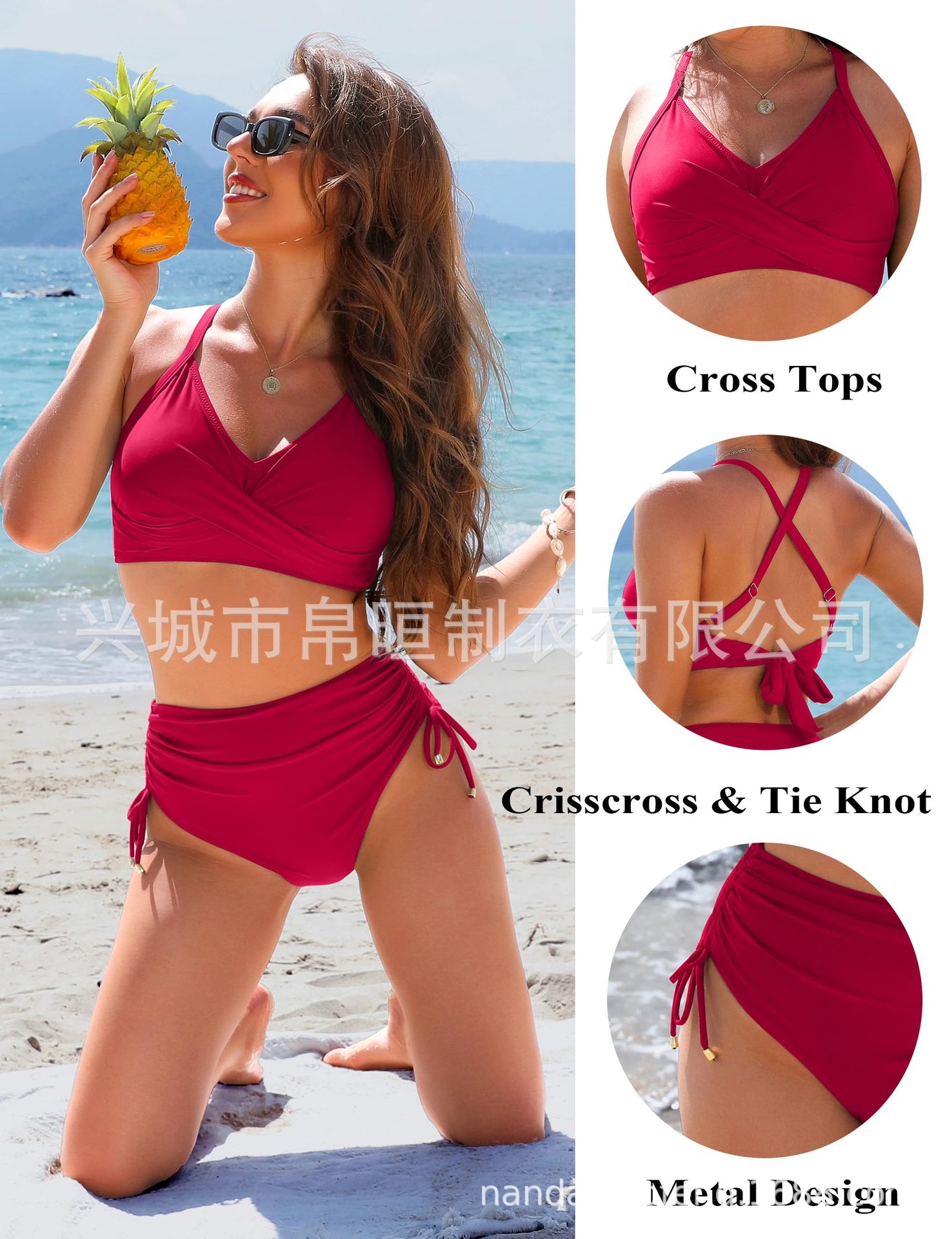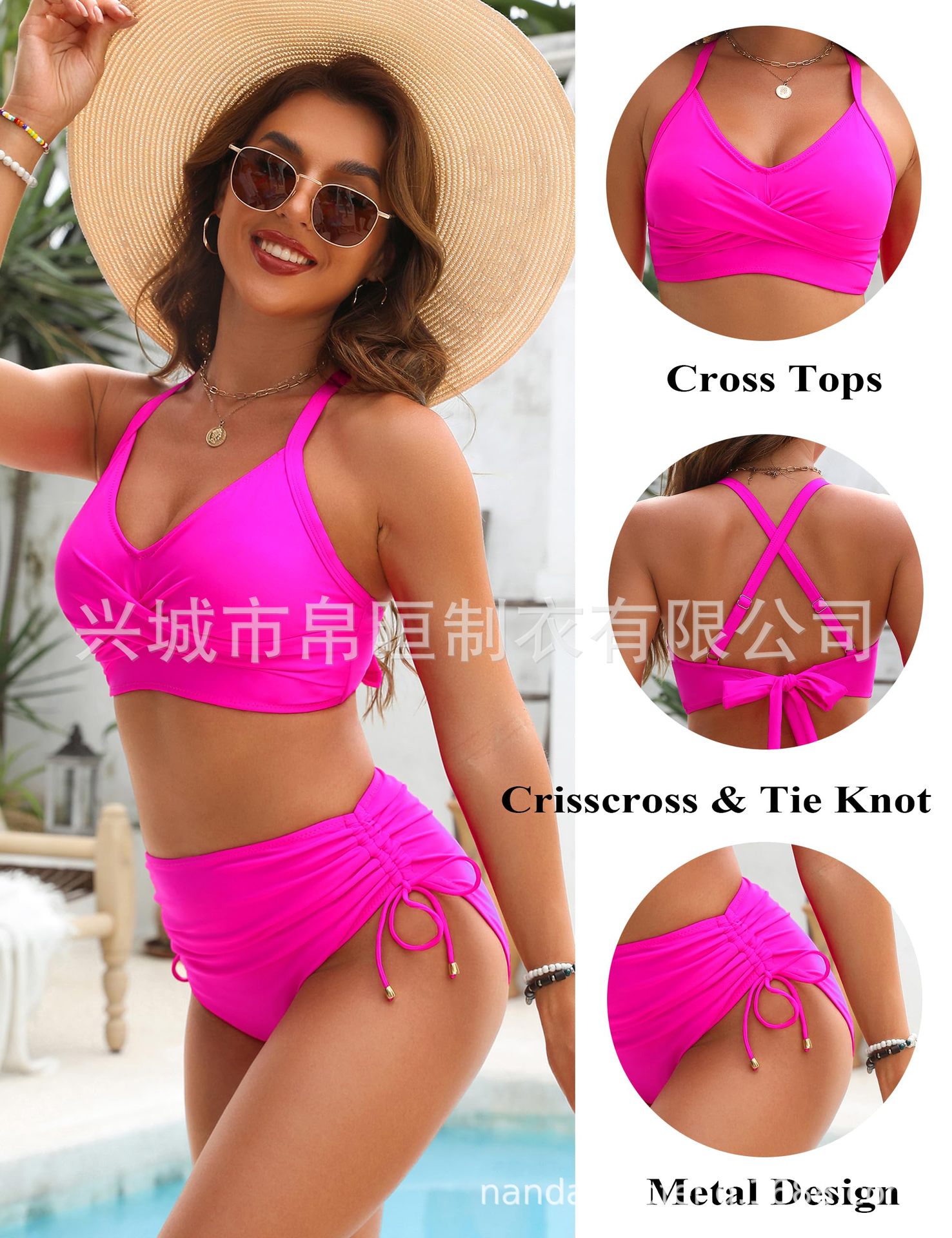 2025 nuevo bikini de cintura alta de Europa y los Estados Unidos bikini conjunto de cintura alta trajes de baño de abdomen de correa cruzada