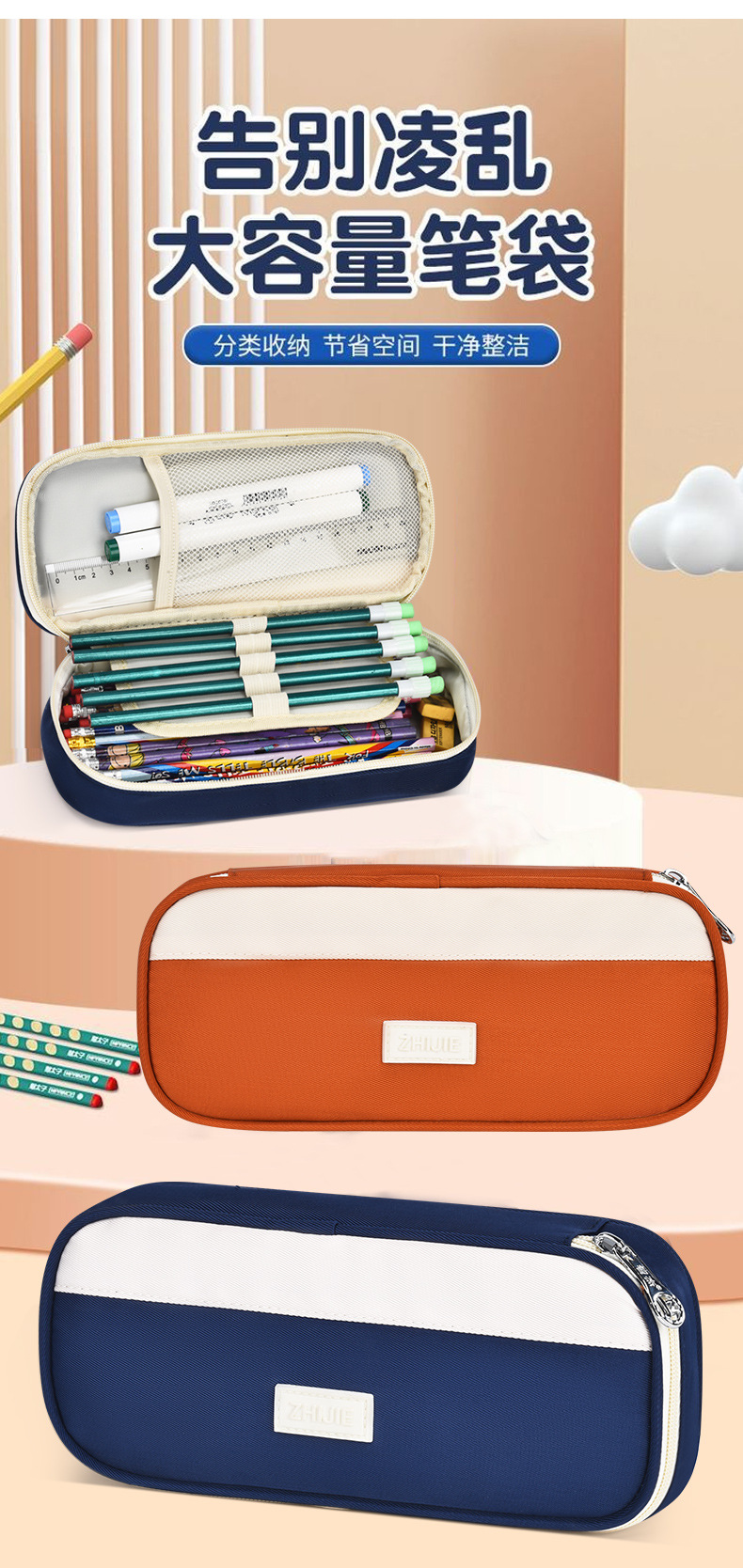 Estuche para lápices Versión coreana de la caja de lápices para estudiantes de primaria, nueva bolsa de papelería para estudiantes de secundaria, caja de papelería para hombres y mujeres, logotipo de impresión de gran capacidad