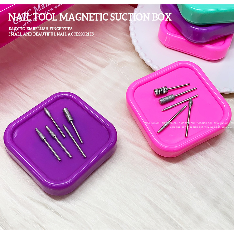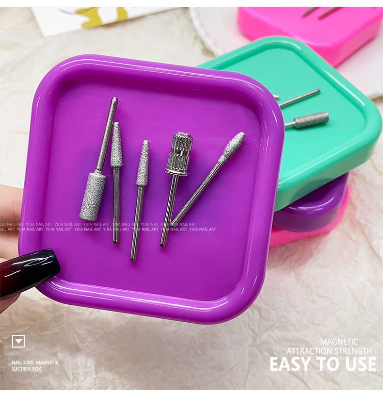 Caja de almacenamiento de cabeza de pulido magnético de atracción de manicuras de escritorio con caja de herramientas de ppp magnética