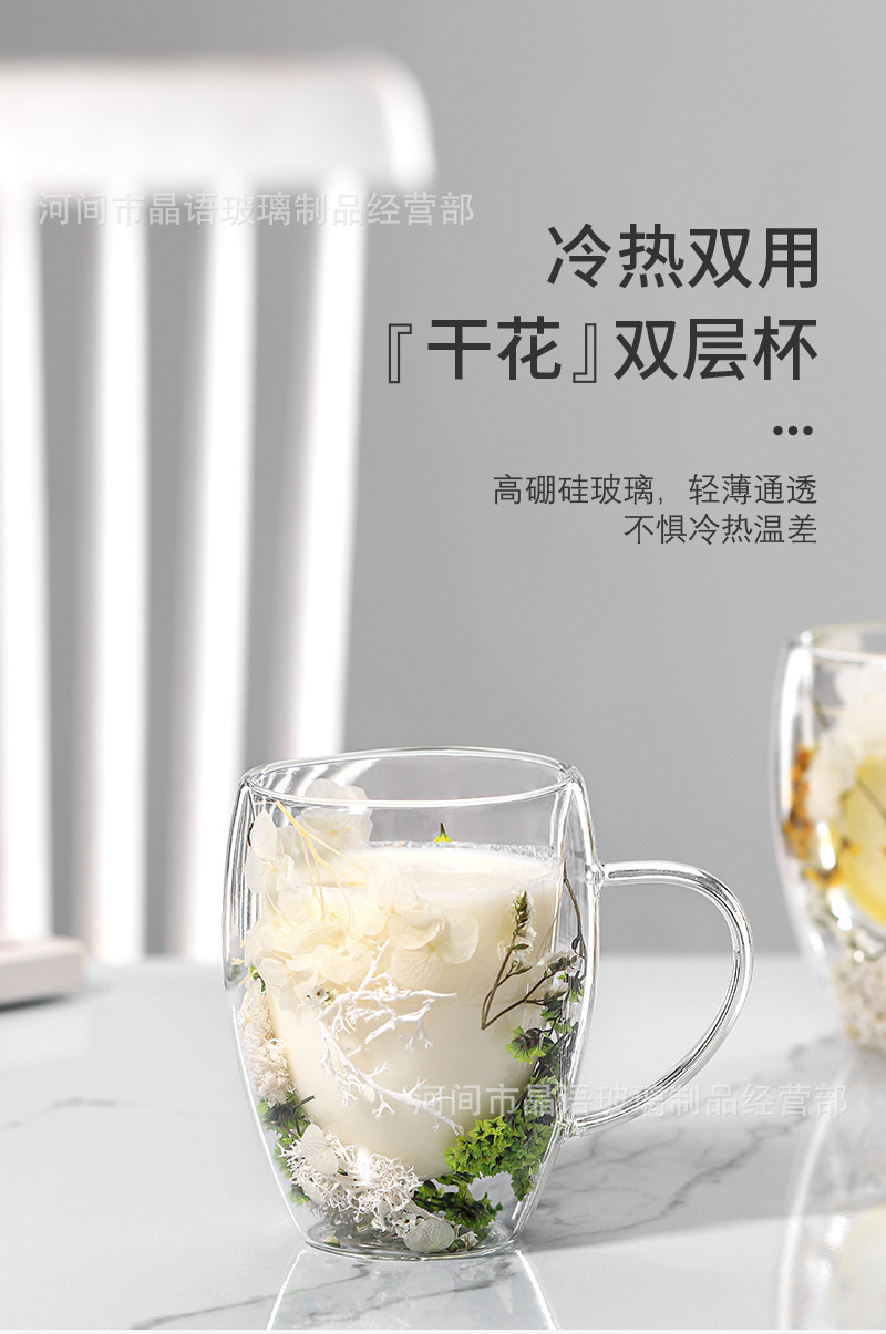Flor real flor secada taza al por mayor de alta apariencia creativa fábrica de vidrio de doble capa suministro transfronterizo hogar leche taza de café