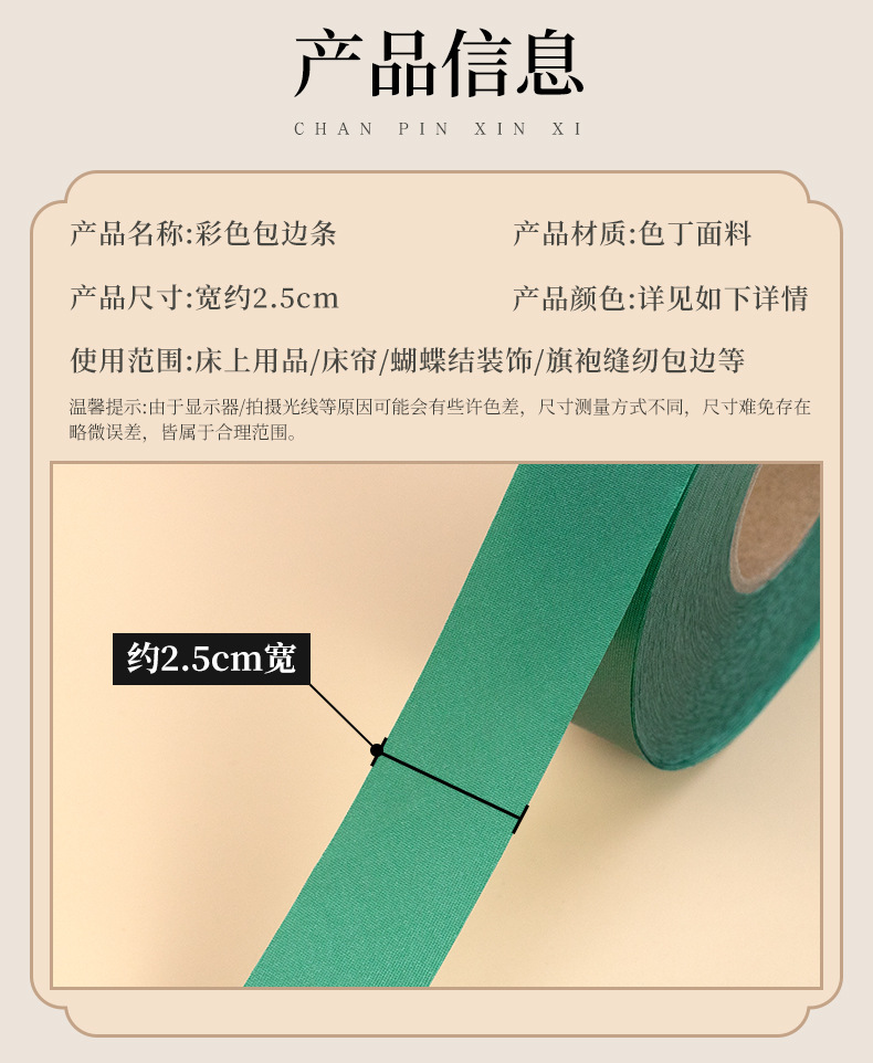 Cheongsam borde tira 2,5 cm tela de satén borde de corte oblicuo borde cinta de raso ropa de prensa tapeta Accesorios