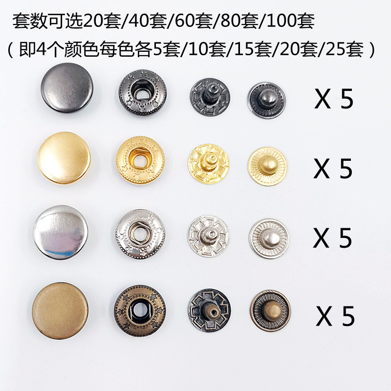 Cuatro colores 12.5mm cobre metal 633 conjunto de cierre + herramientas botones ropa ropa de cuero botones de presión ocultas