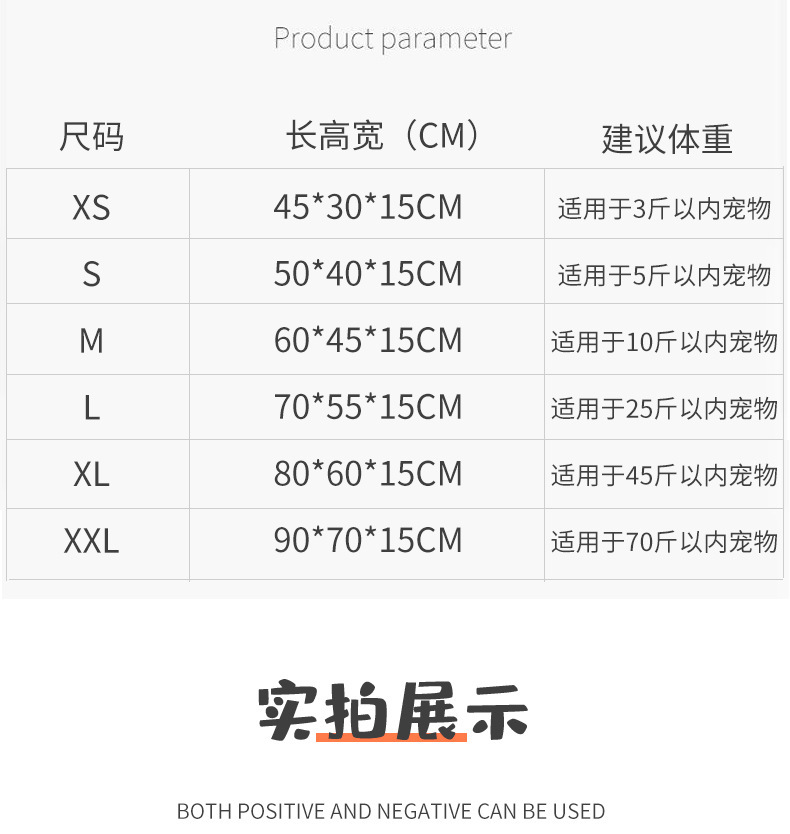 70 * 55 cm (se recomienda dentro de 25 kilogramos)