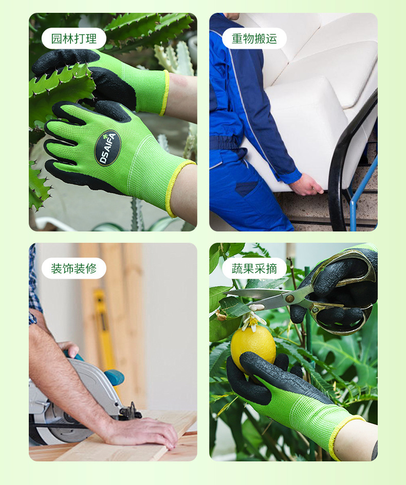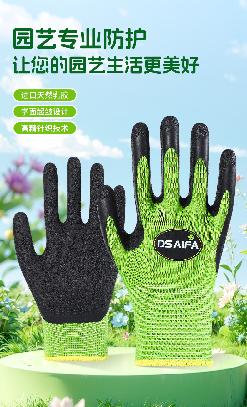 | Modelo de especificación | Guante de jardinería de arrugas de látex verde,Guantes de jardinería con arrugas de látex rosa,Guantes de jardinería con impresión de látex púrpura,Guantes de jardinería con impresión de látex verde |