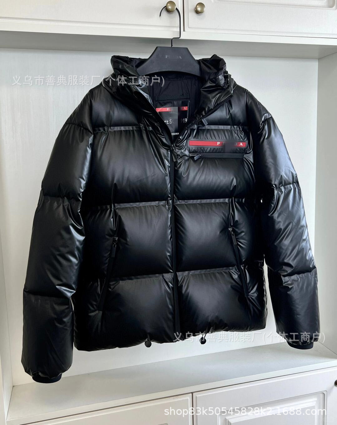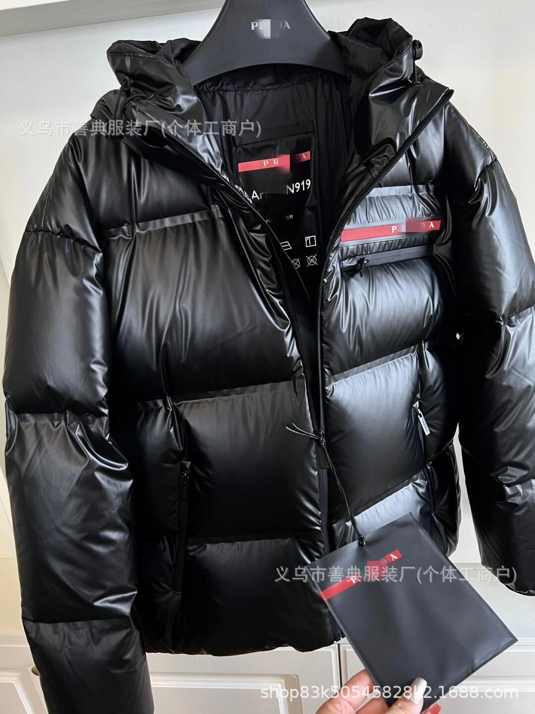 PD Pujia estación europea pareja de invierno con bolsillo de etiqueta roja chaqueta de plumón chaqueta de moda para hombres y mujeres