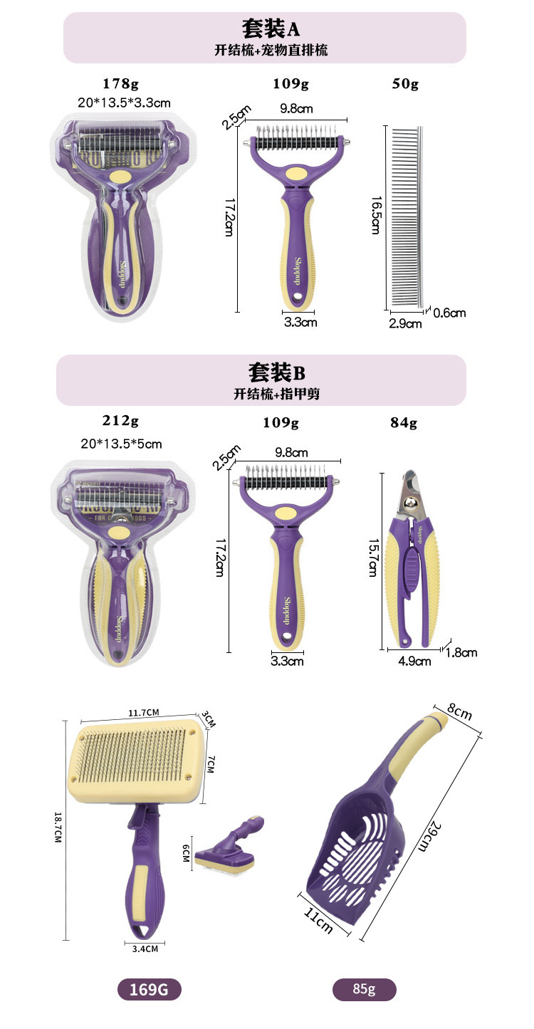 Spot peine para mascotas peine de nudo abierto para perros peine de aguja de aseo de gato peine de depilación de botón peine de depilación cuchillo de depilación