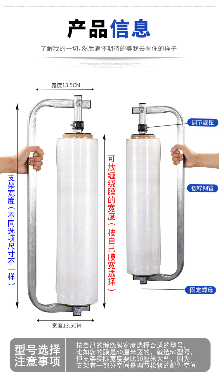 Máquina de envasado de película envuelta máquina de envasado de película ajustable elástica envolvente soporte manual de embalaje mango de película