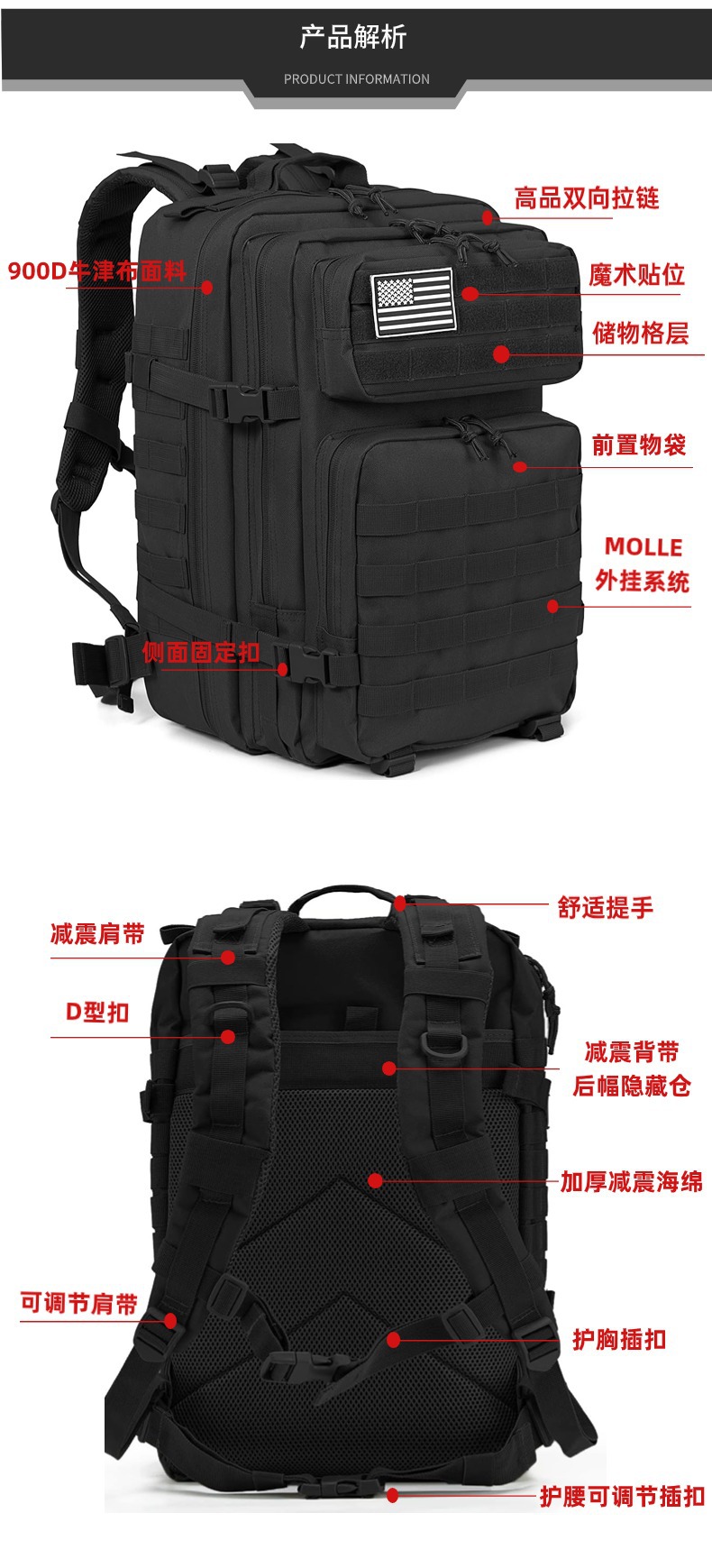 Viaje al aire libre bolsa de montaña de gran capacidad multifuncional tela oxford impermeable de hombro para hombres montar caminata mochila táctica
