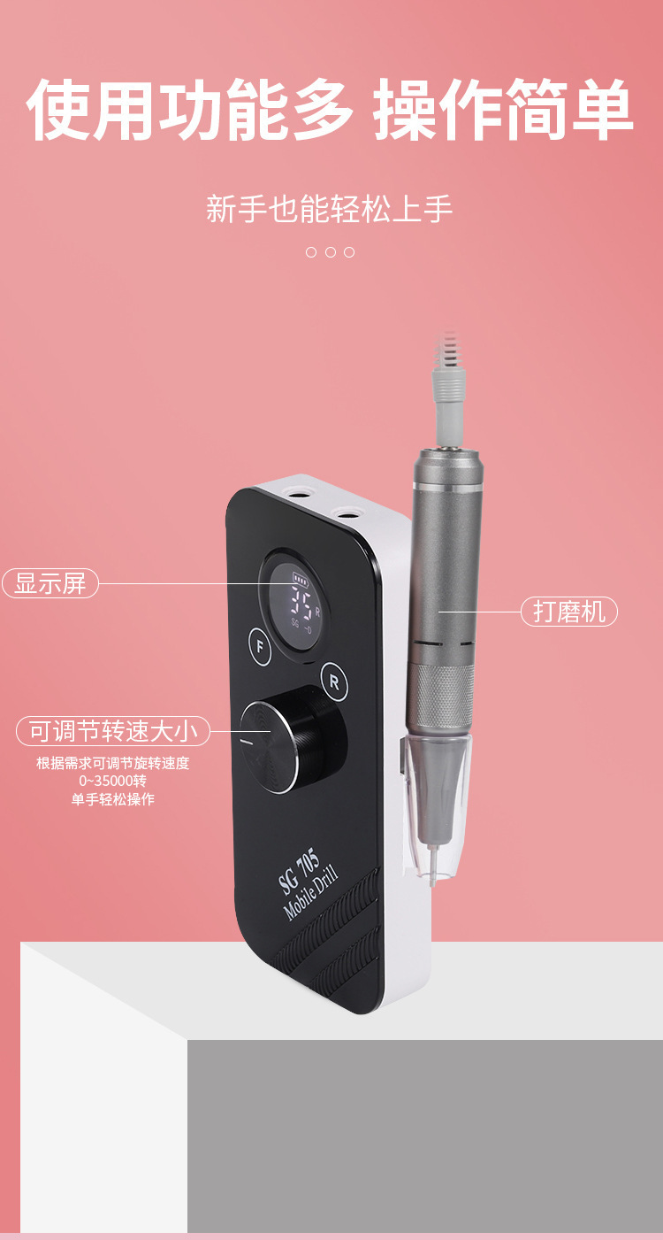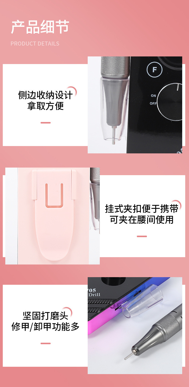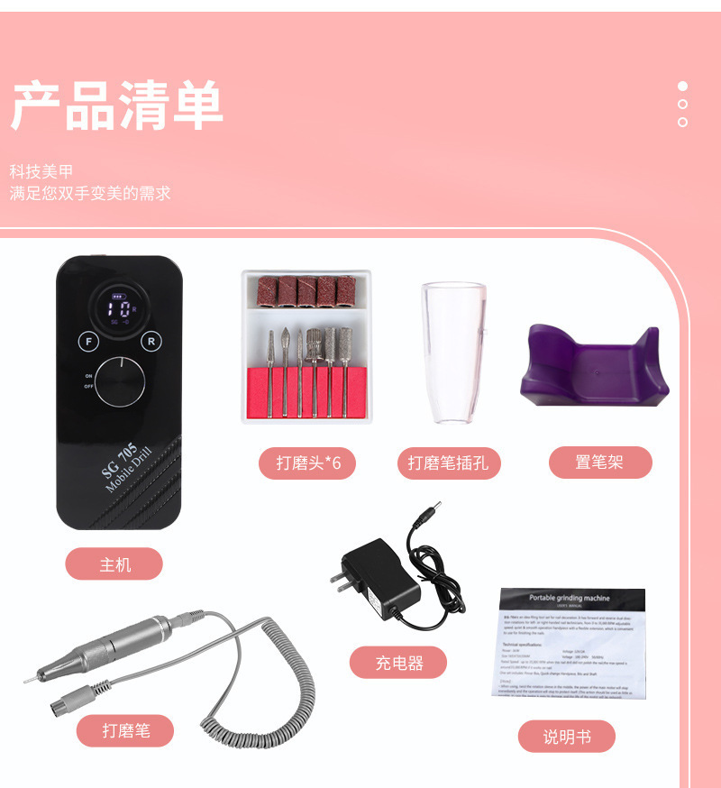Lijadora de uñas transfronteriza, cargador, removedor de uñas portátil, piel muerta, almacenamiento de energía, lápiz de molienda, herramientas de uñas, Amazon