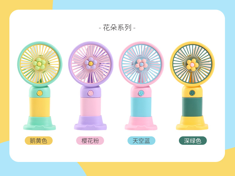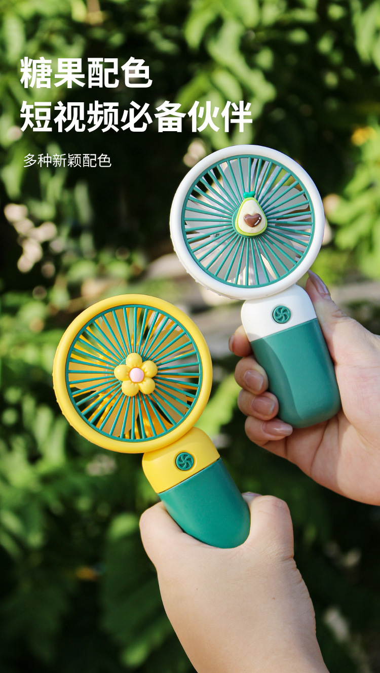 Flor de dibujos animados, fruta, carga de mano, ventilador pequeño, fácil de llevar al aire libre, soporte portátil para teléfono móvil, ventilador pequeño