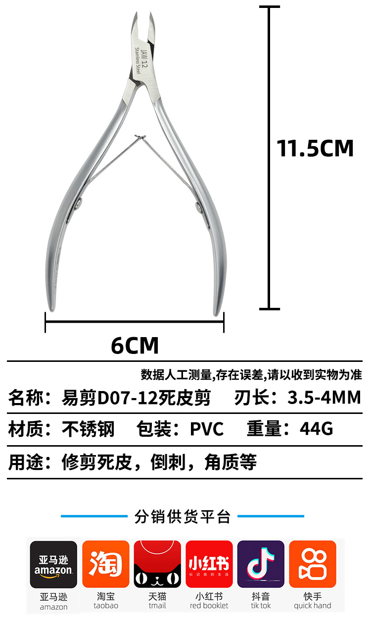 Calidad vietnamita, fácil de cortar, D07-12, tijeras para piel muerta, mango esmerilado, pinzas para piel muerta, herramientas de manicurista con filo de cuchillo pequeño y afilado