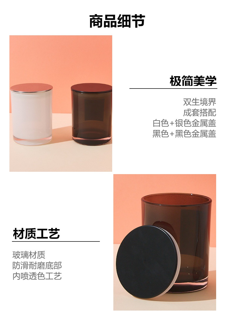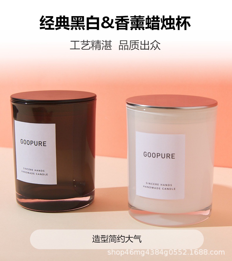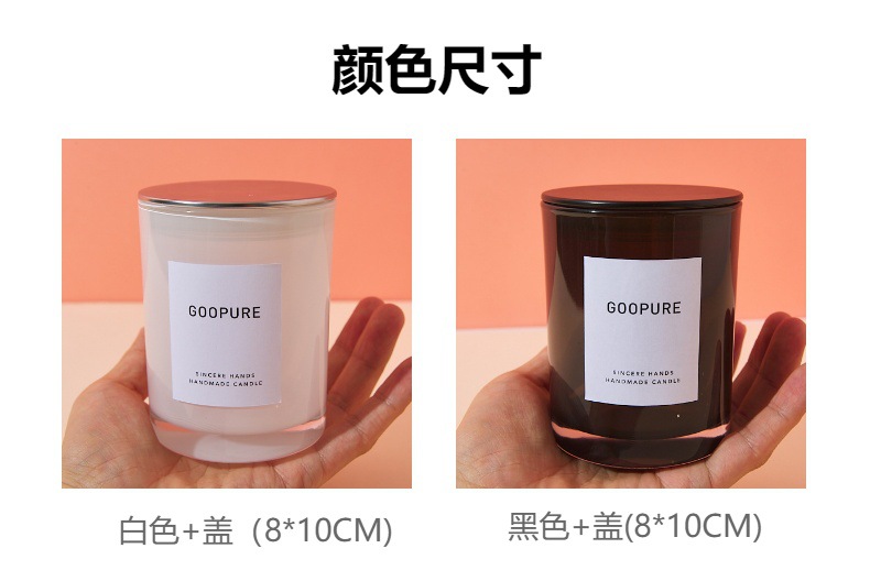 Vela de aromaterapia de vidrio transfronterizo 320ml Vela para el hogar transparente en blanco y negro Vela de vidrio con tapa Candelero de lujo ligero