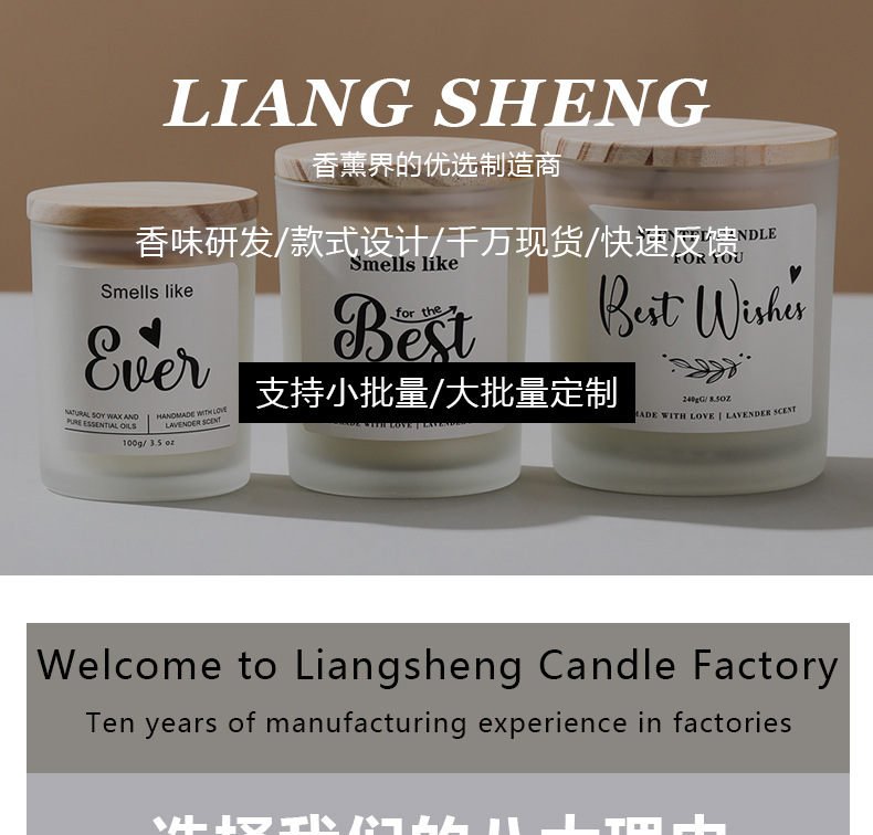 Vela de aromaterapia Vaso de vidrio esmerilado Cera de soja hecha a mano sin humo Gapa de madera de sensación de alta calidad Regalos para el hogar Dormitorio