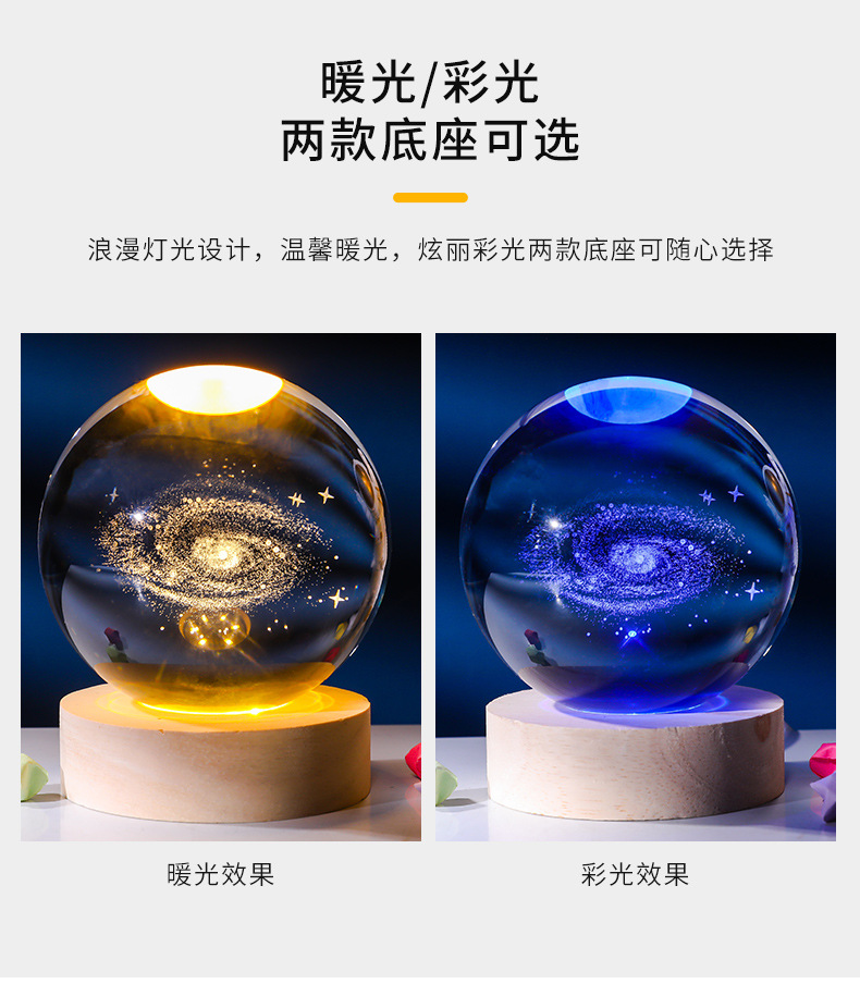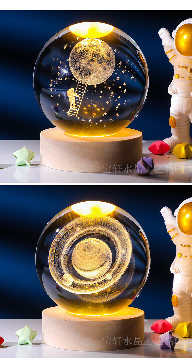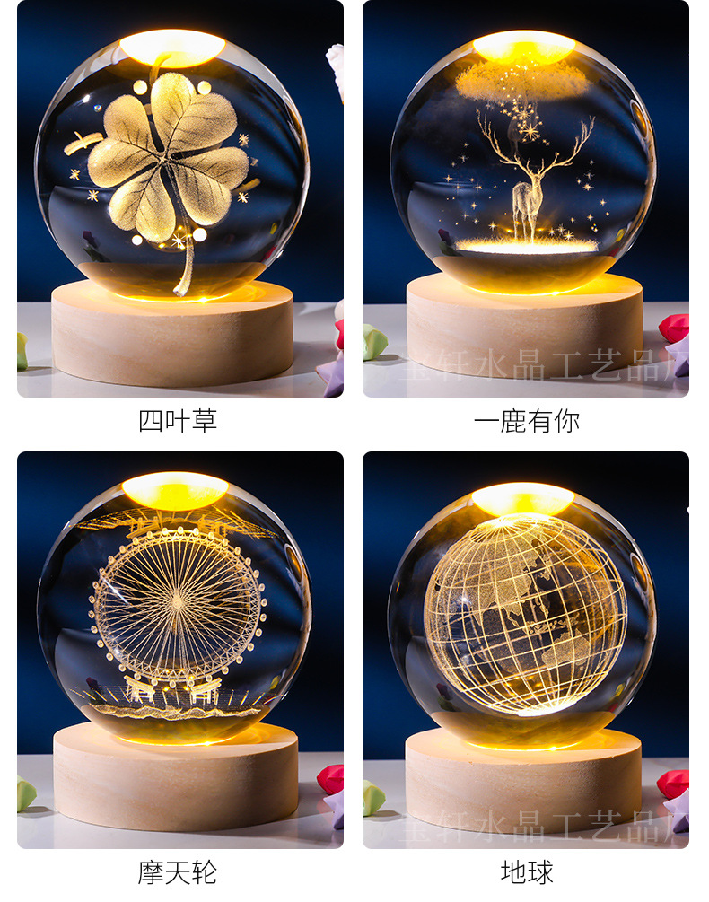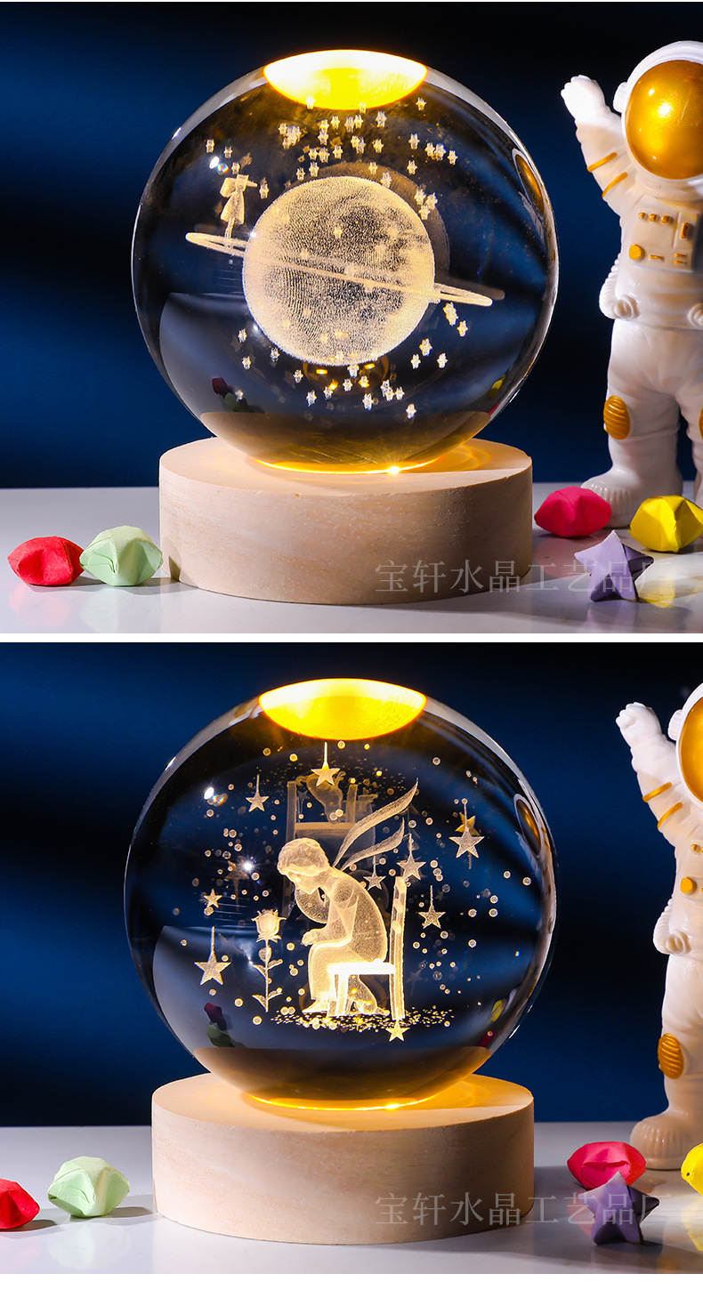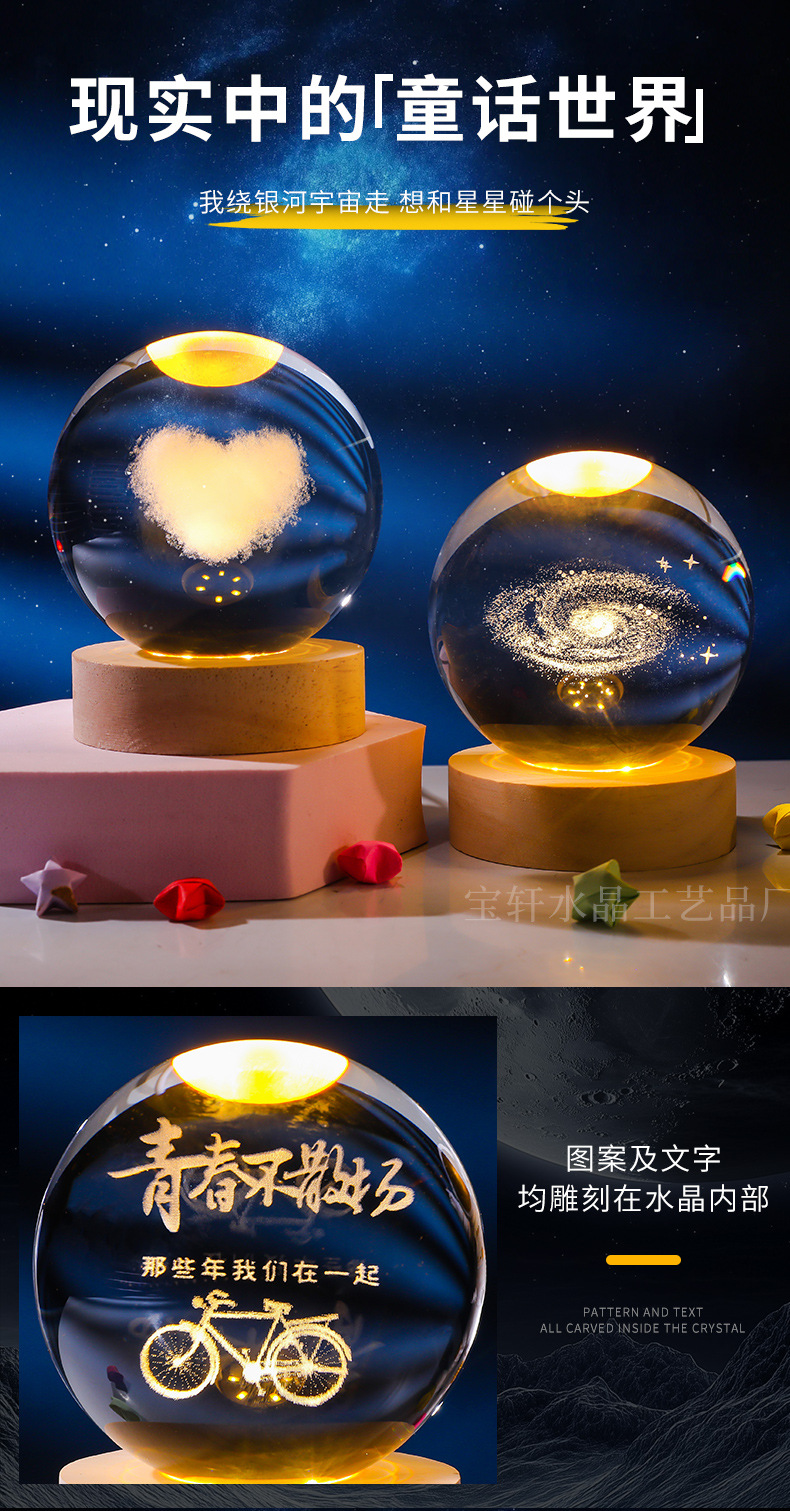 Bola de cristal al por mayor galáctica bola de cristal tallada interna 520 Qixi Navidad noche lámpara adornos de cristal