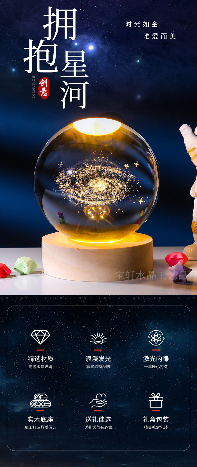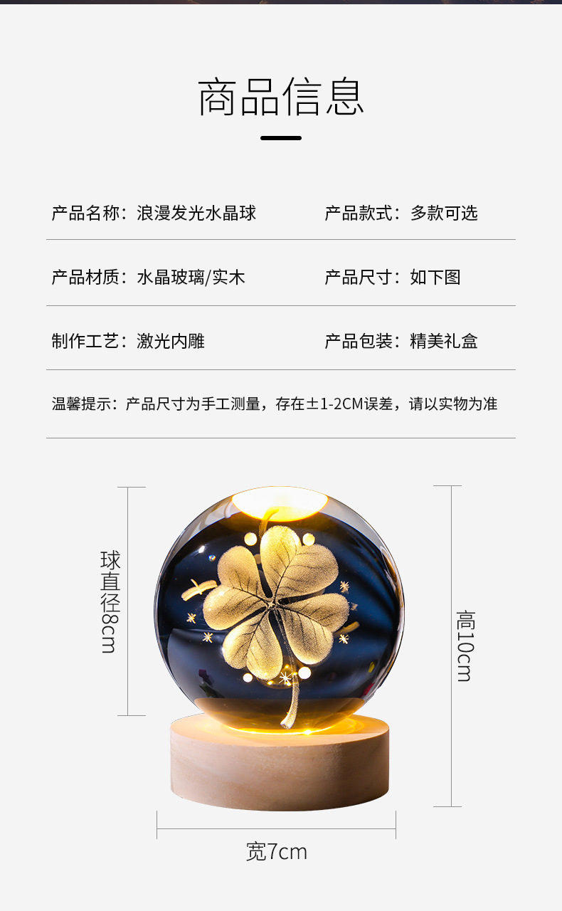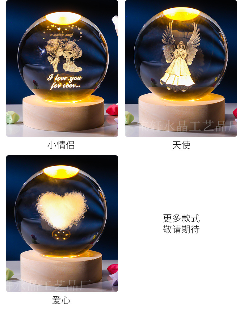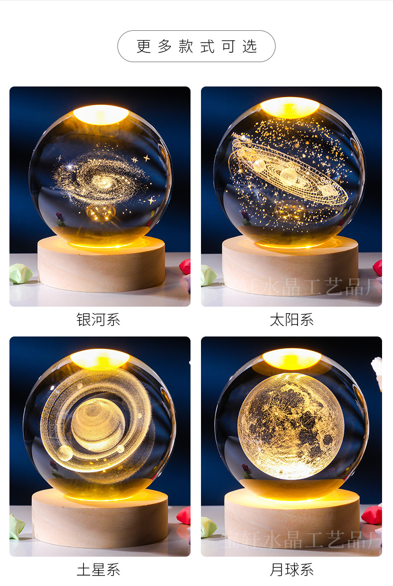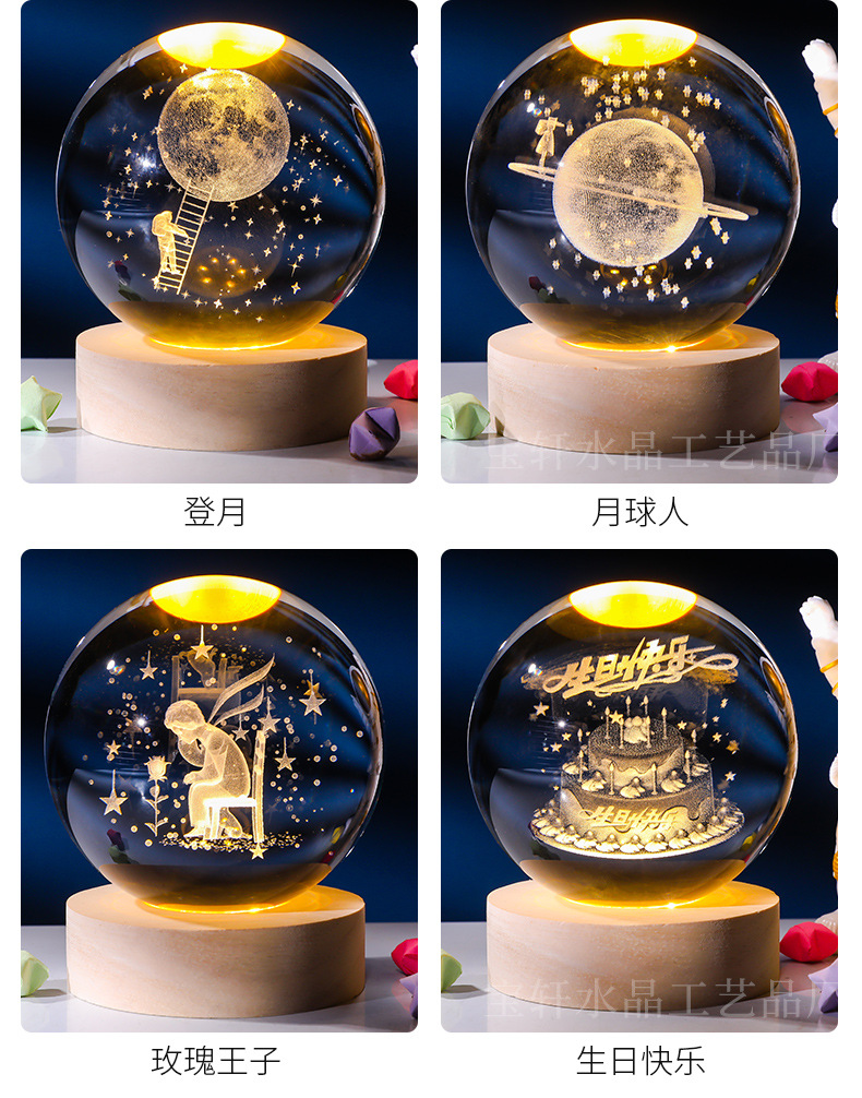 Bola de cristal al por mayor galáctica bola de cristal tallada interna 520 Qixi Navidad noche lámpara adornos de cristal