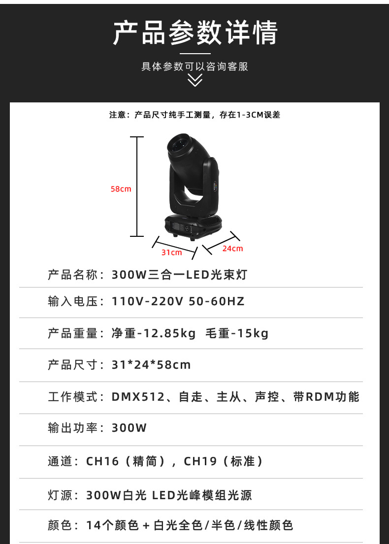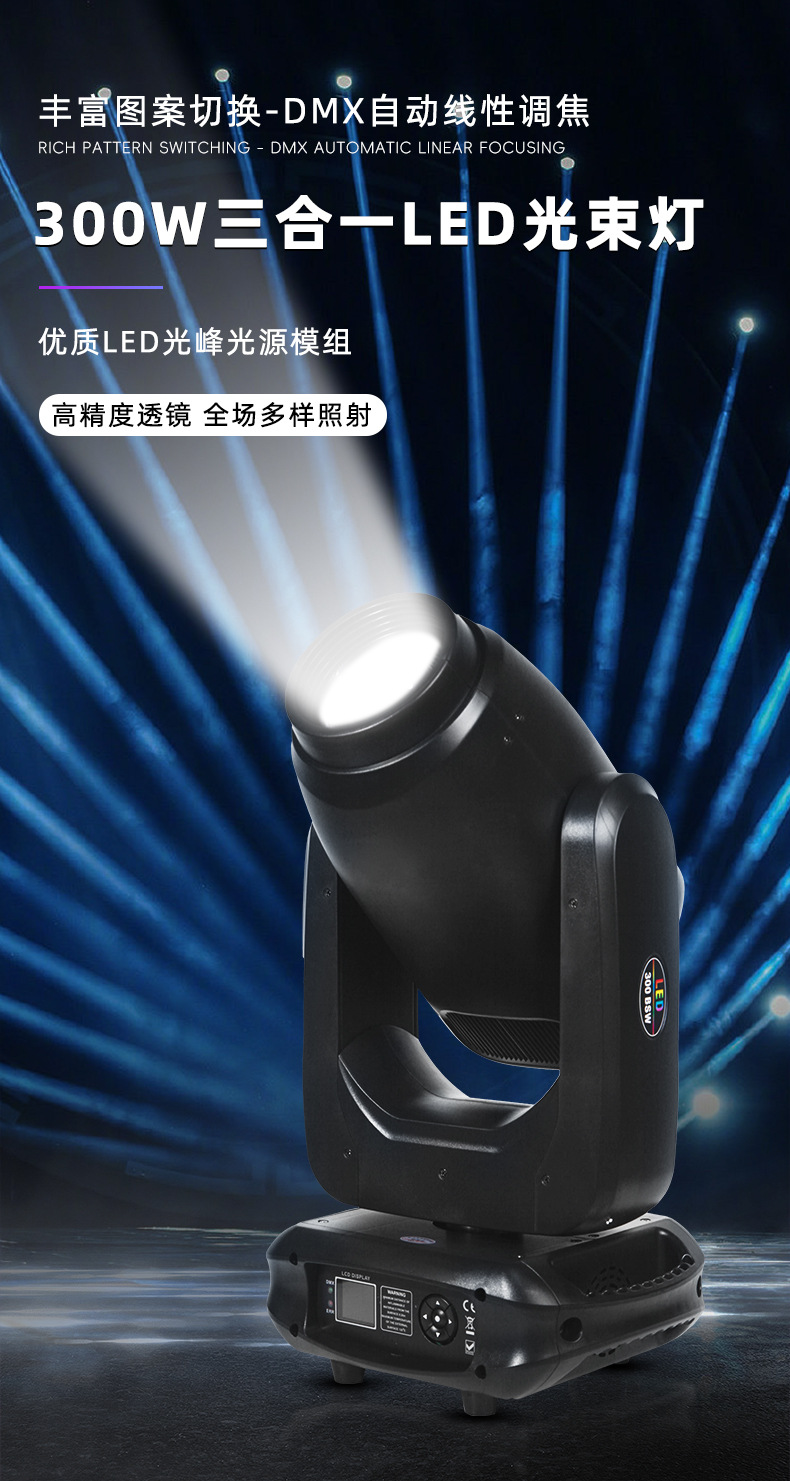 LED300W 3 - en - 1 iluminación de patrón de barra KTV giratoria cabeza de agitación luz de haz de espectáculo escenario luz de velocidad de luz