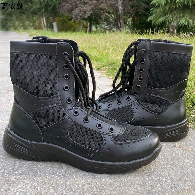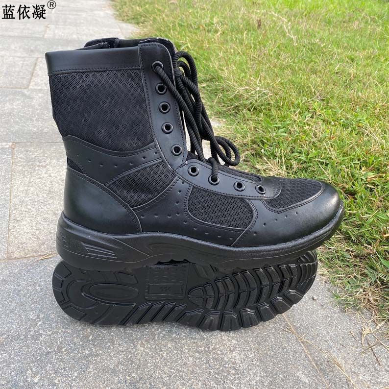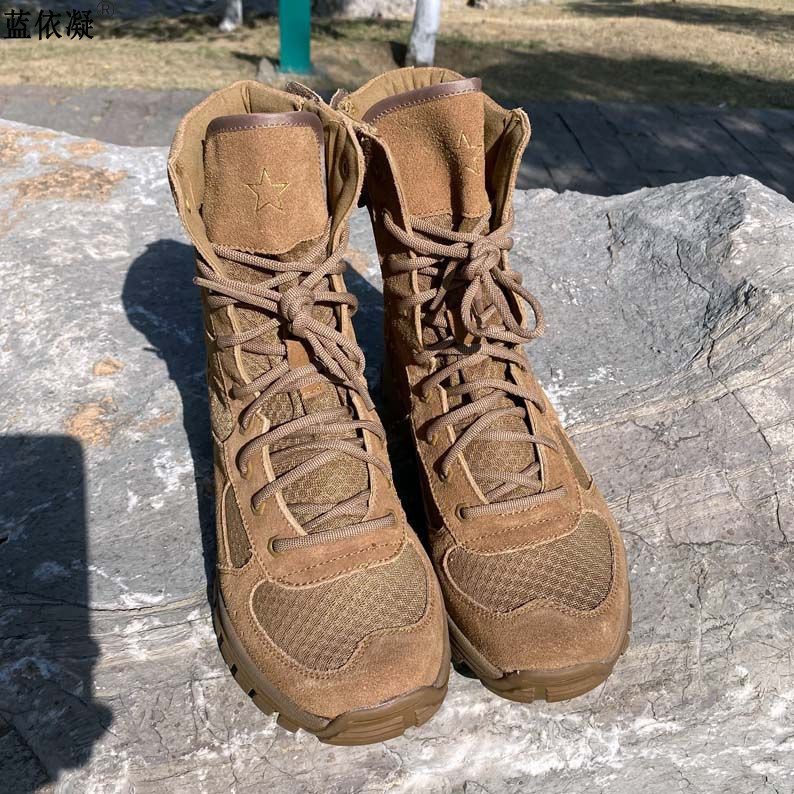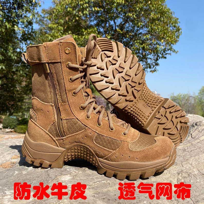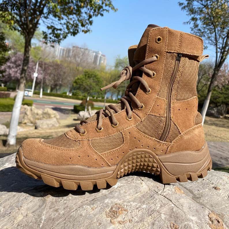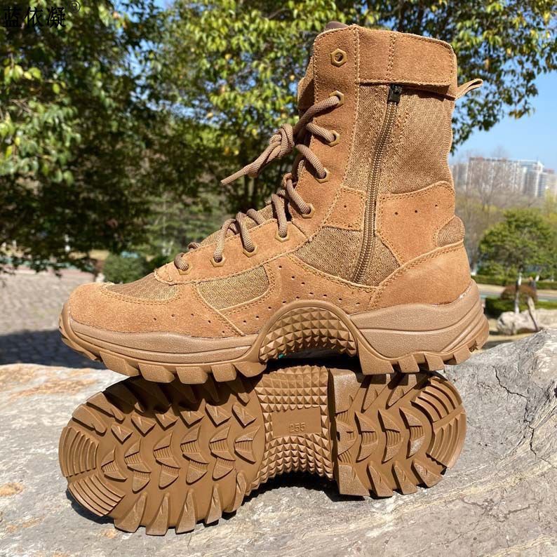 Nuevas botas de combate de malla marrón de verano transpirables ultraligeras para hombres con cremallera resistente al desgaste de alta altura contra pinchazo en el desierto