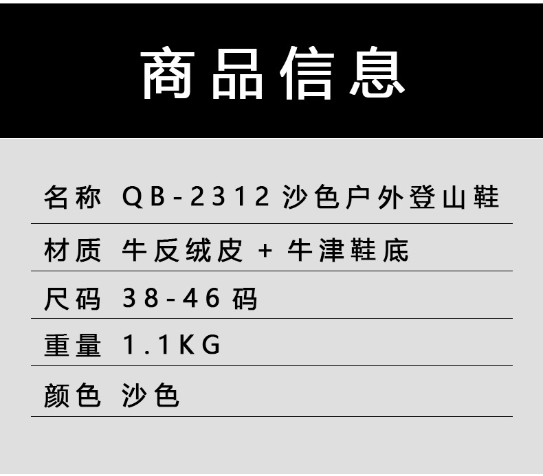 | Número de artículo | QB - 2312 zapatos de montañismo al aire libre de color arena |