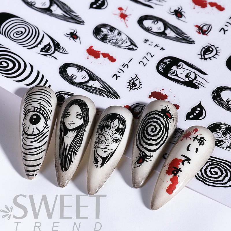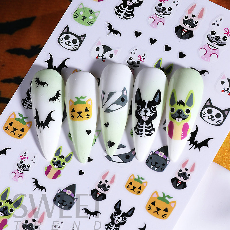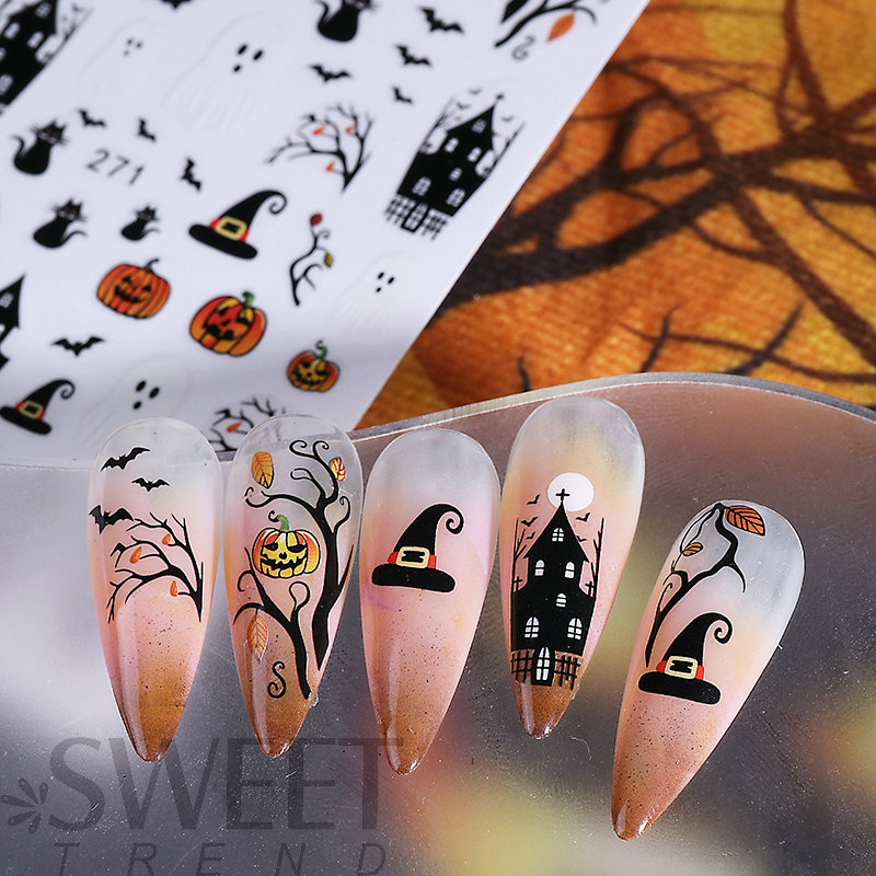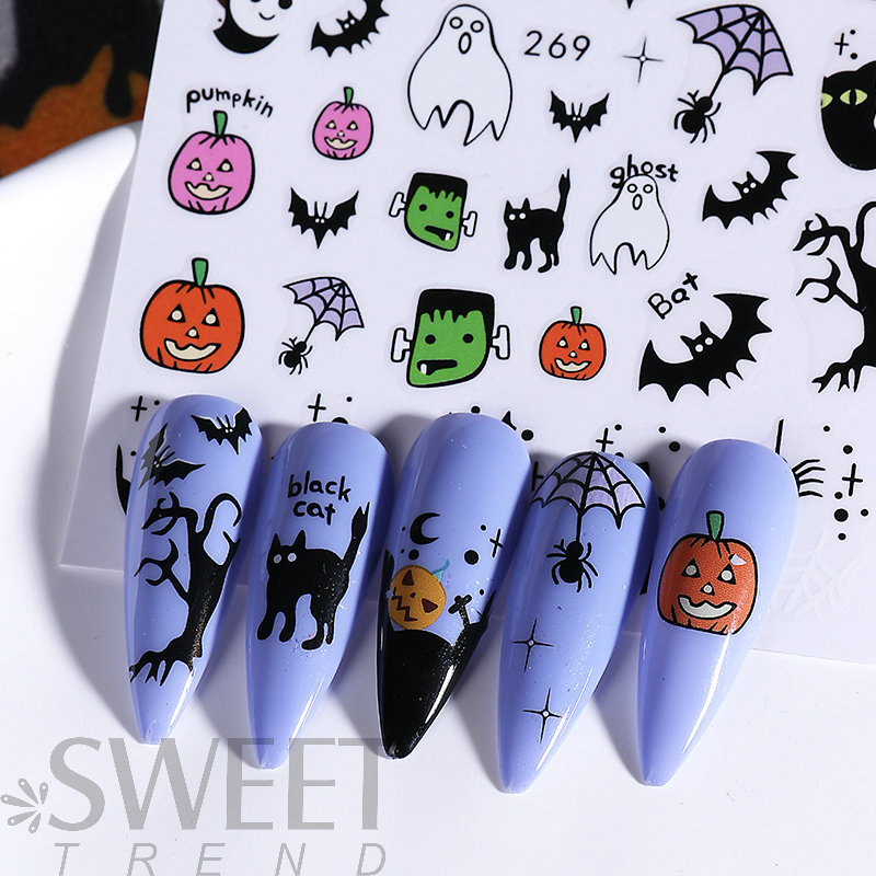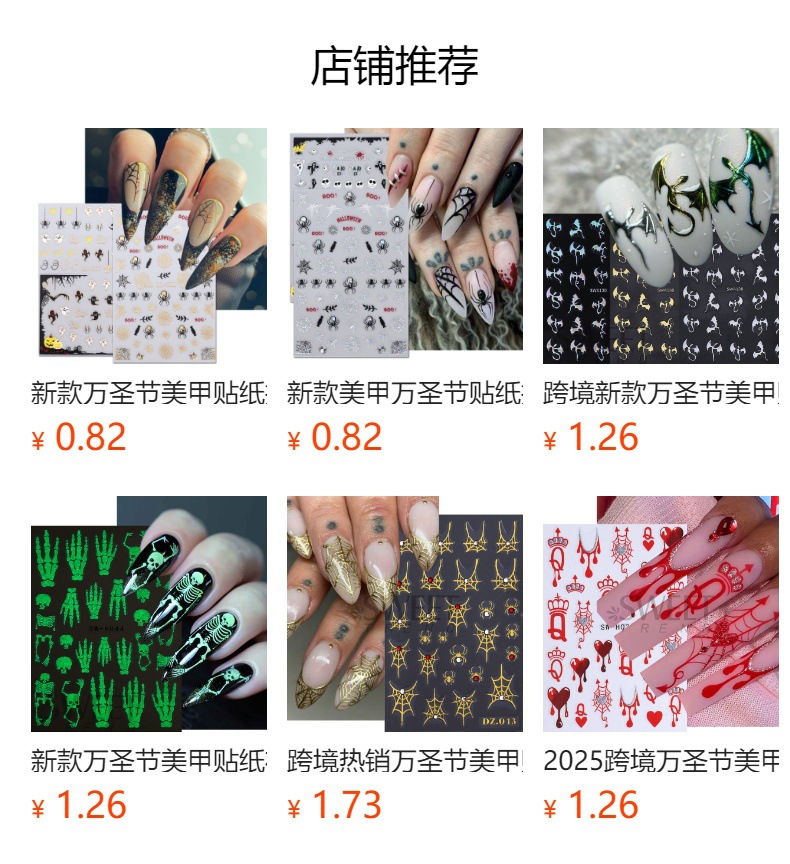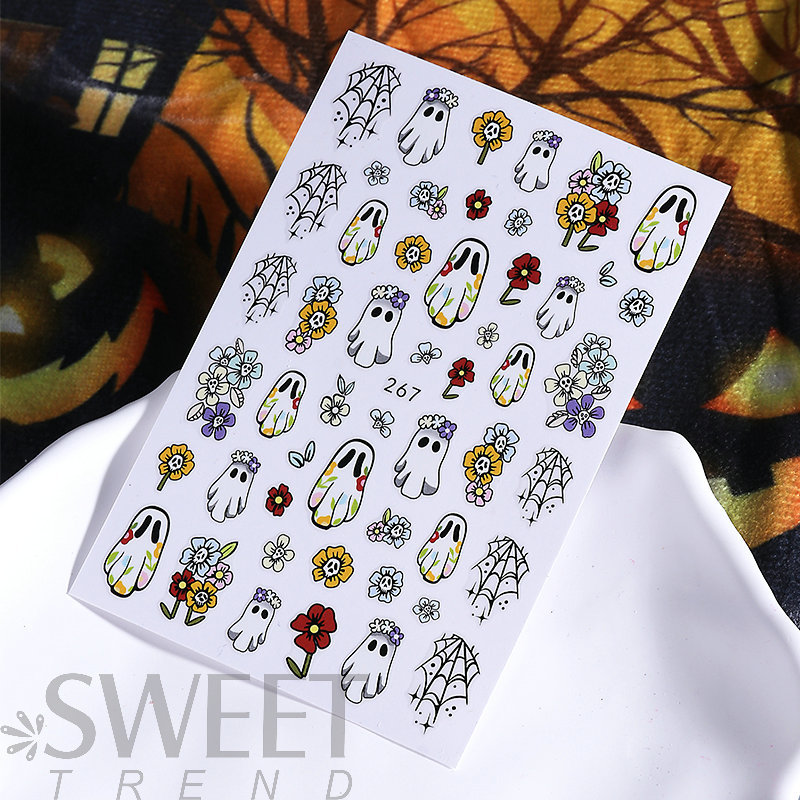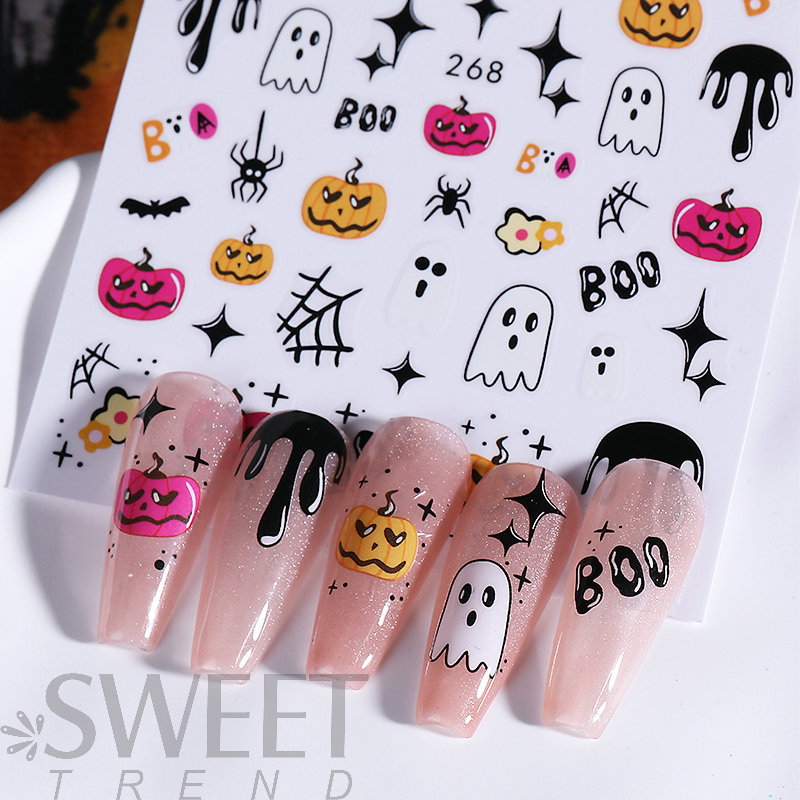 Nuevas pegatinas de uñas transfronterizas, dibujos animados lindos, halloween fantasma, setas, cráneos, rosas negras, pegatinas de uñas