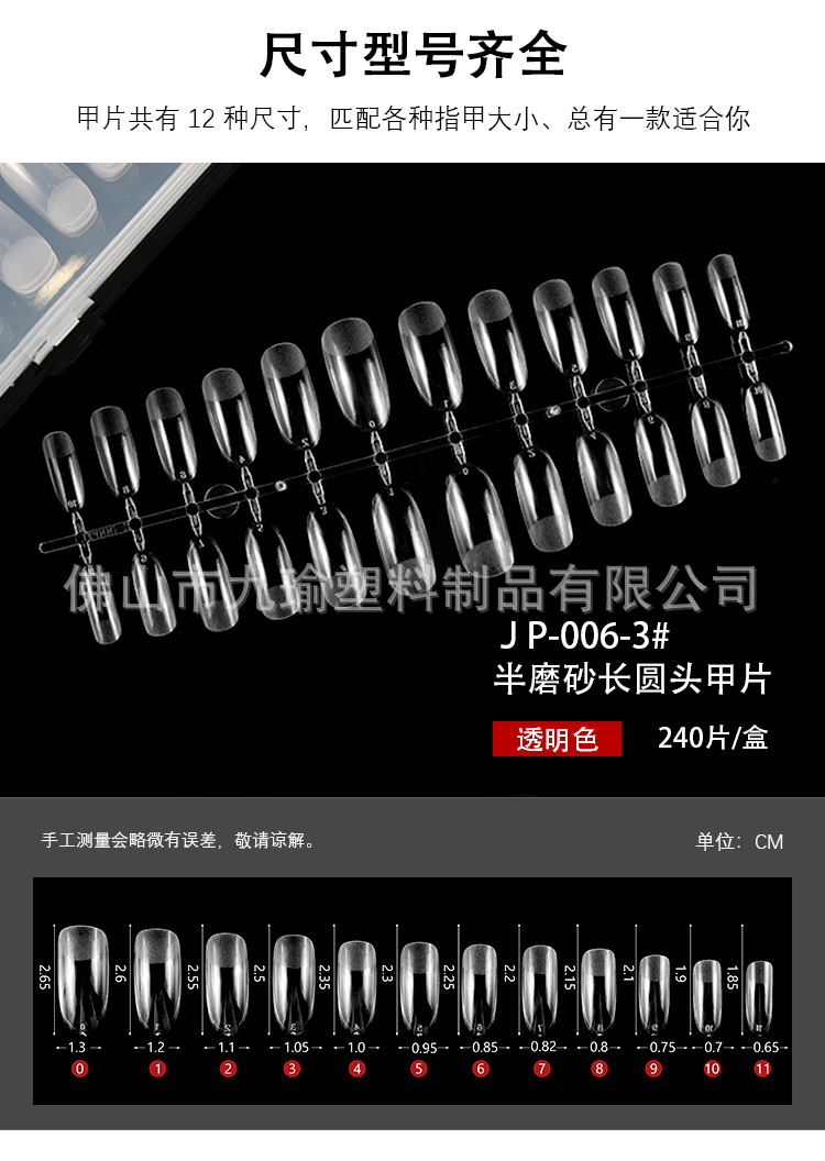 JP006 - 3 medio esmerizado largo cabeza de uñas desgaste extensión de uñas parche de tamaño completo 24 piezas / placa más tamaño opcional