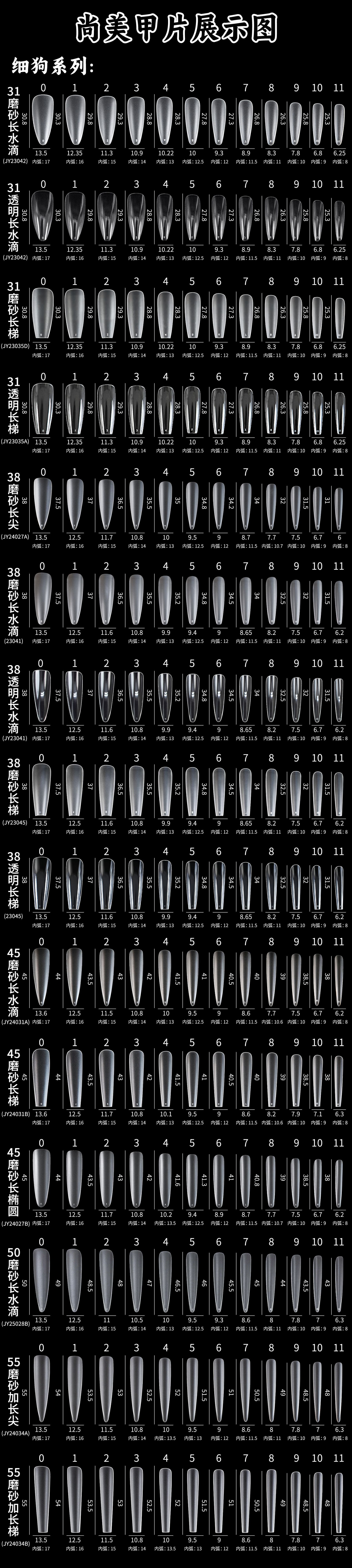 Shangmei parche para uñas de perro fino transfronterizo, escalera larga, punta larga, ultrafino, sin rastro, sin grabado, salón de uñas, parche para uñas extra largo especial