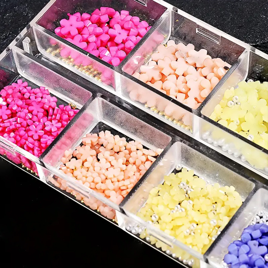 Accesorios de uñas calientes transfronterizos 12 grados de resina tridimensional de cinco flores de perlas mezcladas accesorios DIY