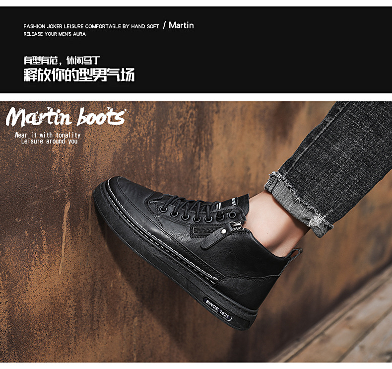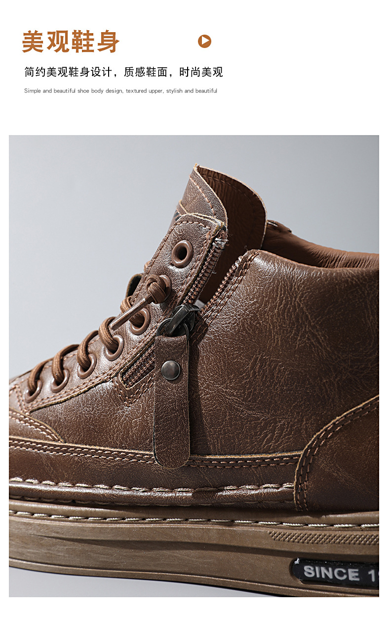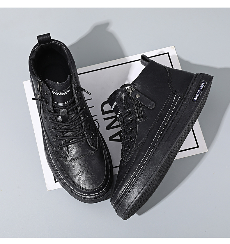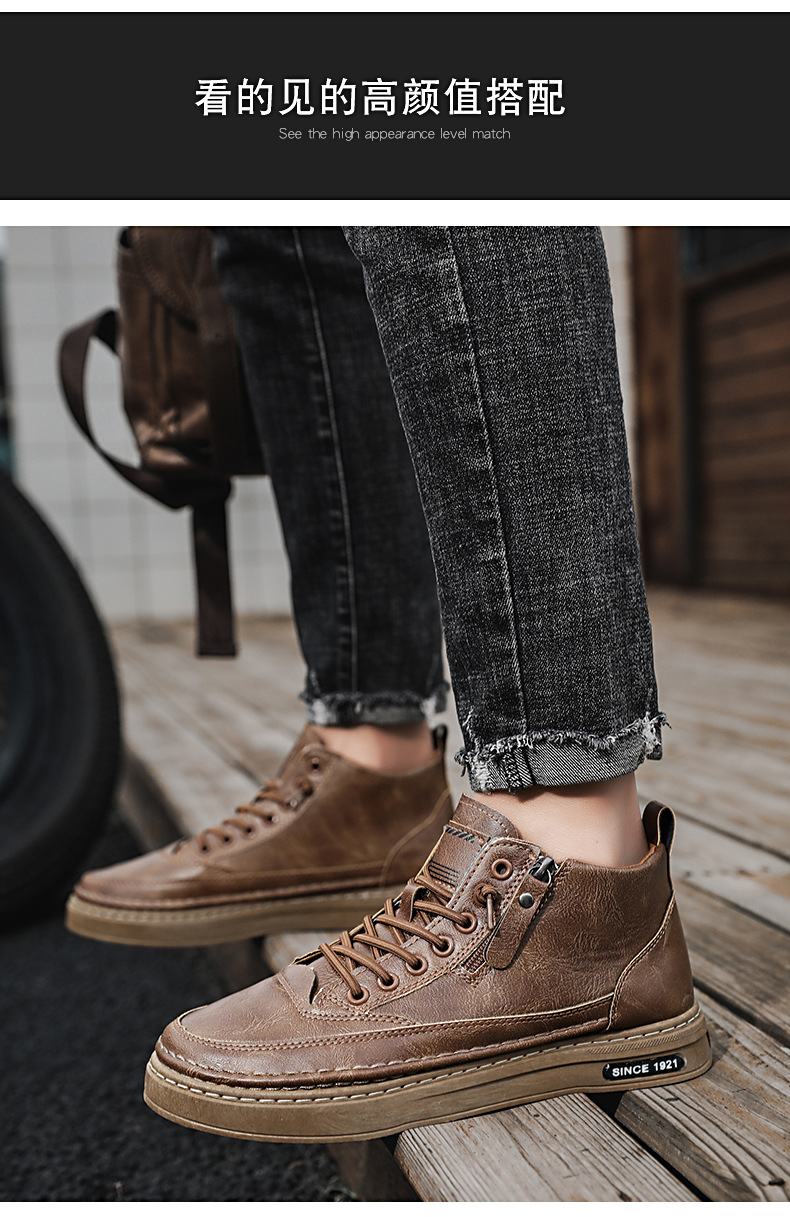 Otoño y invierno nuevos zapatos de skate de cuero de alto impacto de color sólido, zapatos de trabajo casuales de base plana, zapatos de hombre de moda sin lazos